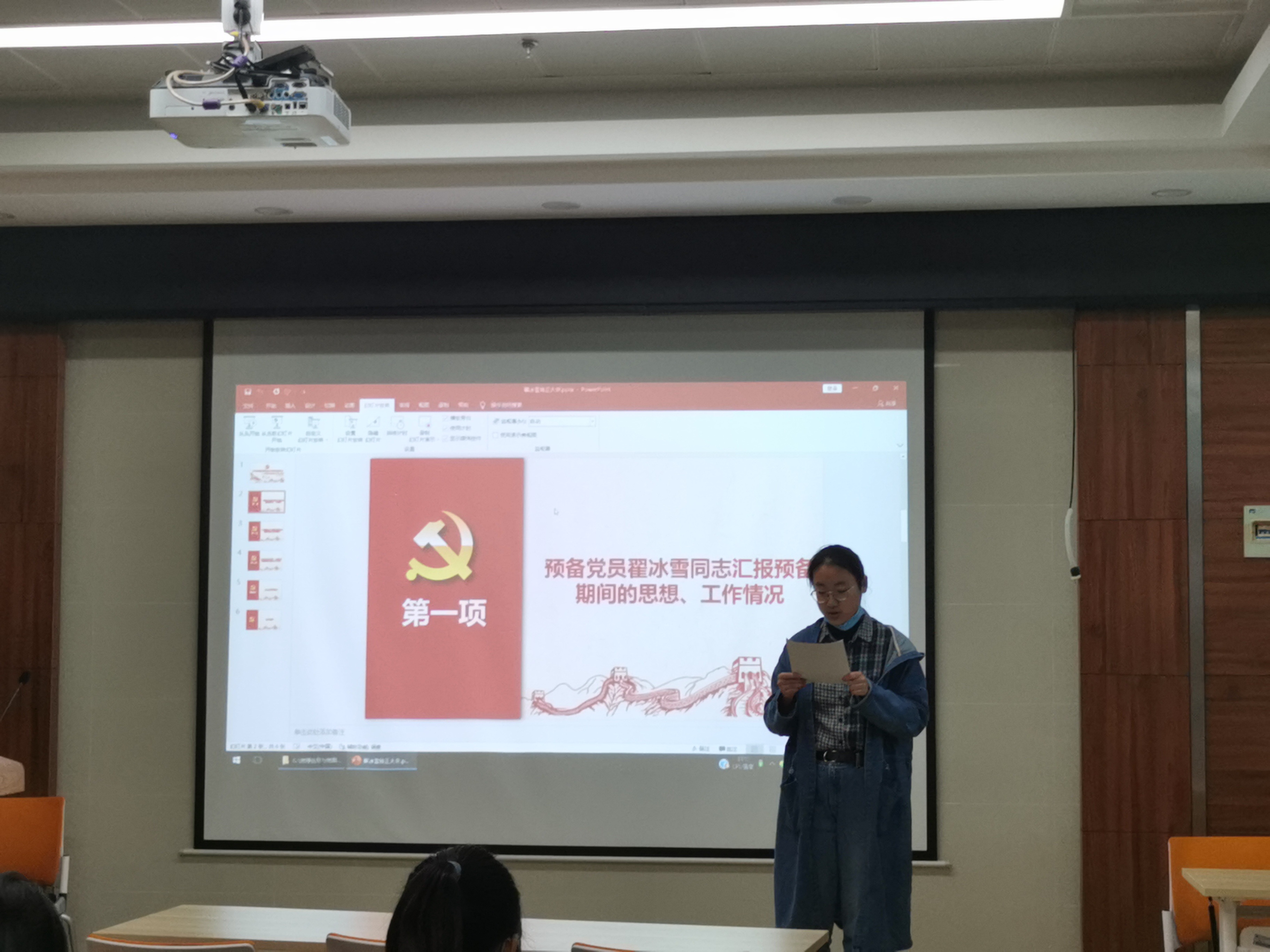 会议第一项,讨论翟冰雪同志的转正工作。首先由预备党员翟冰雪同志汇报预备期间的思想和工作情况;之后由党支部书记张梦同志代表支部委员会报告翟冰雪同志预备期间的教育考察情况;接着,与会党员发表意见,对翟冰雪同志能否转正进行充分讨论。经过由表决权的正式党员进行无记名投票,本次大会表决结果为:翟冰雪同志得赞成票14张,不赞成票0张,弃权票0张。张梦同志宣布翟冰雪同志全票通过,同意其按期转正为中共正式党员。最后,党员翟冰雪同志进行表态,向党组织表明了自己的决心和信心。