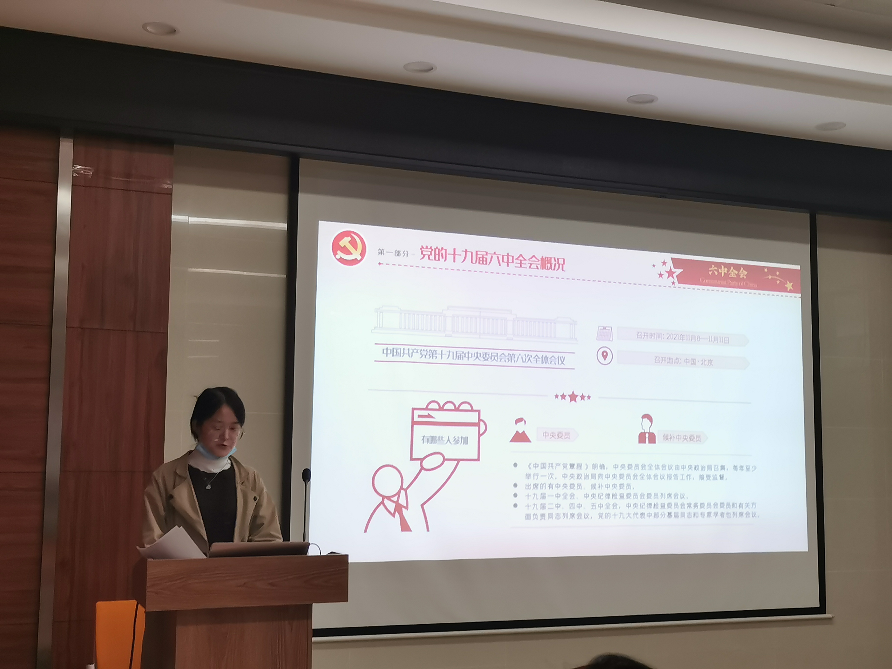 会议第二项,对党的十九届六中全会公报进行了集中学习。党的十九届六中全会重点研究并全面总结党的百年奋斗重大成就和历史经验问题,张梦同志介绍了党的十九届六中全会概况,并从前瞻角度解读了《中共中央关于党的百年奋斗重大成就和历史经验的决议》。与会党员同志们认真学习贯彻六中全会精神,并纷纷表示,作为研究生党员,要坚定理想信念,牢记自己的使命,始终谦虚谨慎、不骄不躁、艰苦奋斗,在第二个百年中为实现中华民族伟大复兴做出力所能及的贡献。