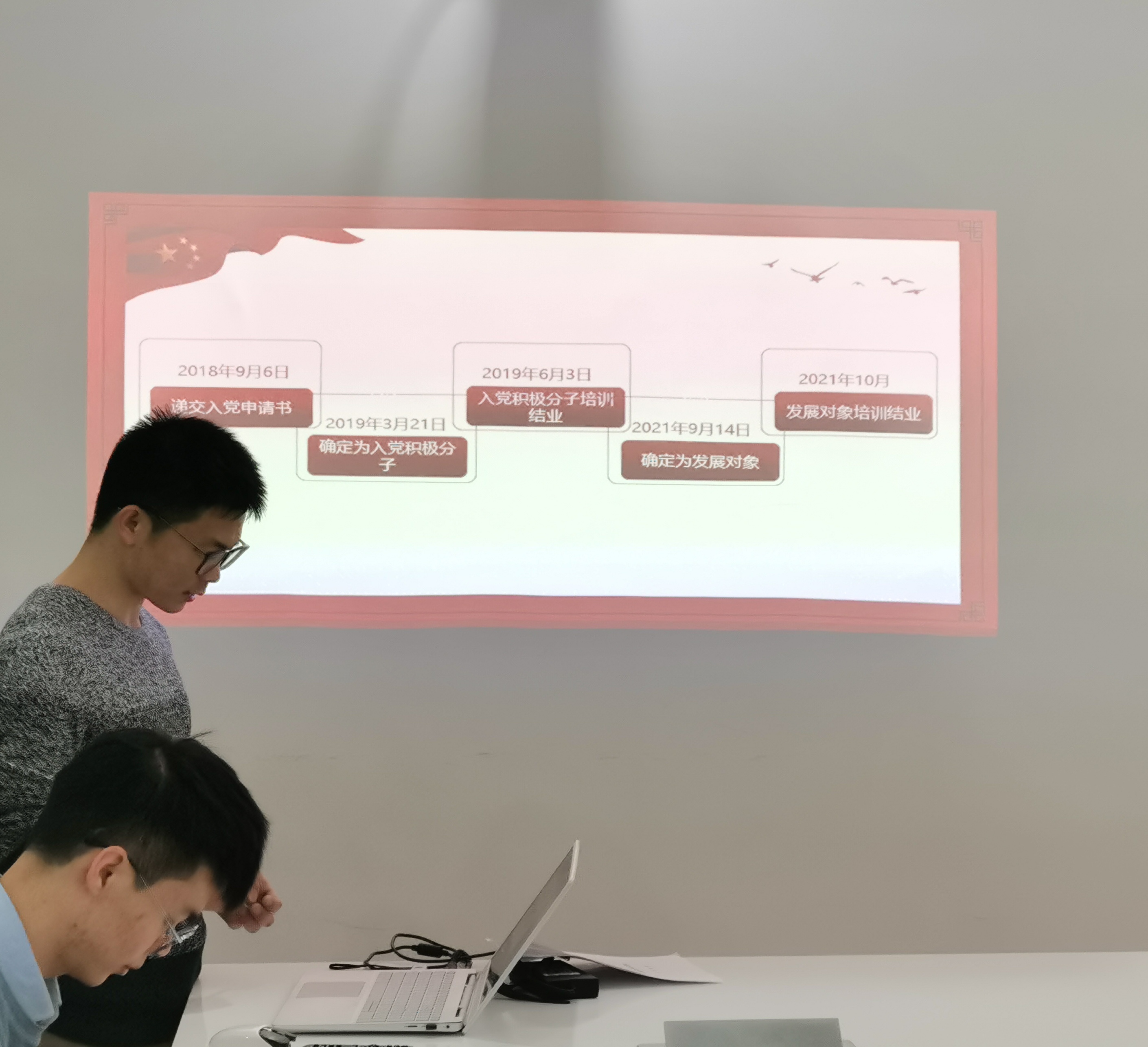 会议第二项,学习党的十九届六中全会精神和感悟分享。到会同志一同观看了党的十九届六中全会视频进行学习,随后,同志们分享了感悟。齐鲁荷同志表达了对国家文化建设和“共同富裕”各项政策的体会感想;张静贤同志表示党的成功离不开党善于总结经验,我们也要从生活中总结经验,突破自我;郭晓嘉同志表示以史为鉴是党的优良传统,以党的奉献精神作为自己的宗旨;黄京同志表达了努力学习,为党奉献的决心;袁鸣蔚同志介绍了学习“一带一路”精神和政策的感悟;张弈辉同志表示我们作为青年党员要加强党史的学习,在自己的研究领域刻苦钻研,为党和国家奉献。