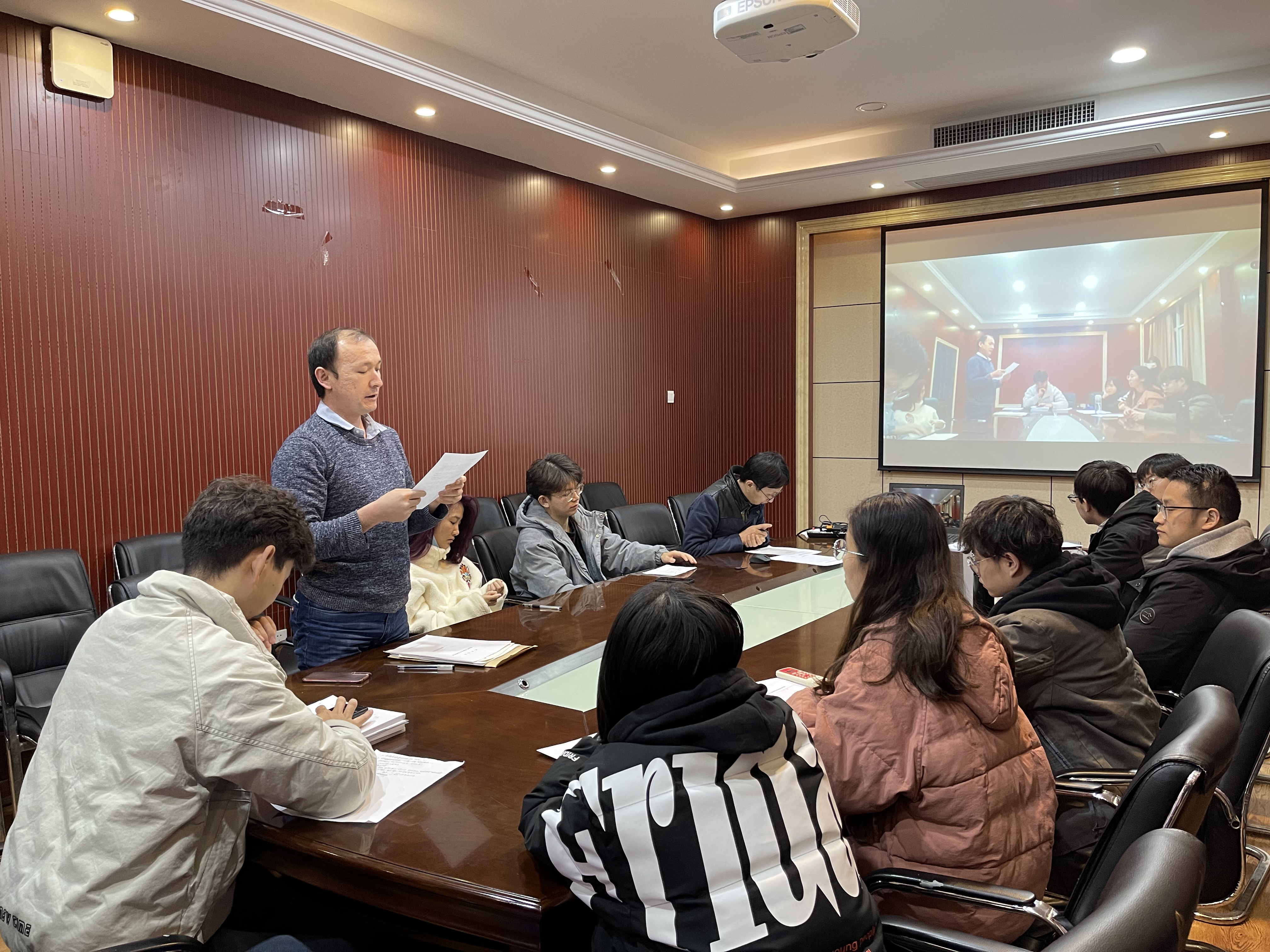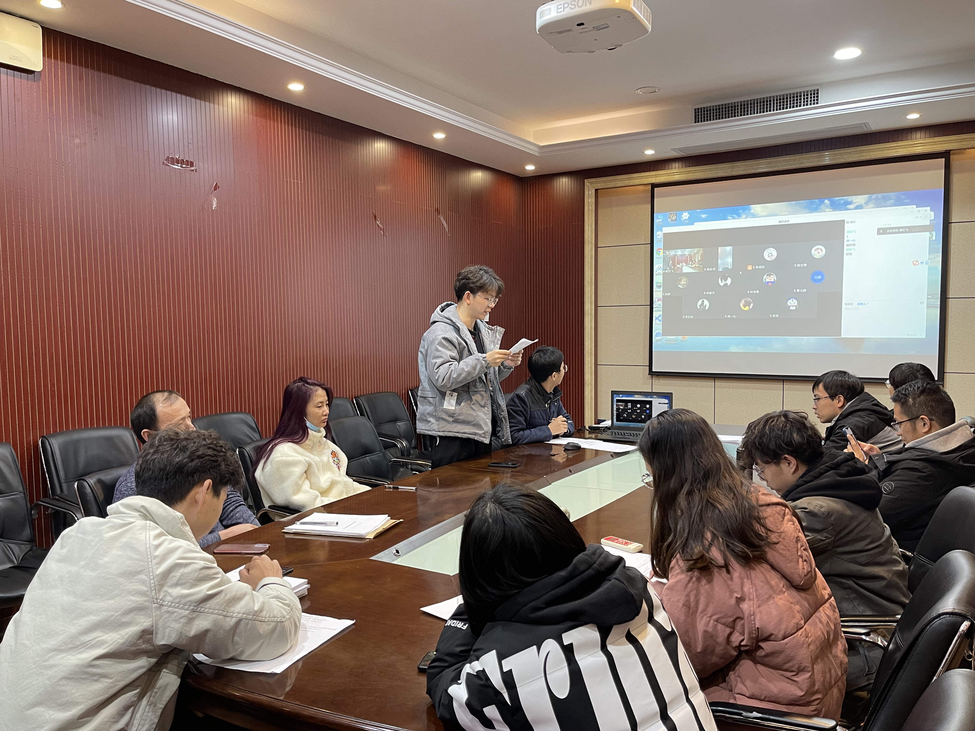 2021年12月17日晚19:00,地理信息与地图科学系研究生第一党支部党员转正大会于院办504会议室召开。本次会议由支部副书记杨任飞同志主持,会议应到正式党员25人,预备党员6人,实际参会正式党员16人(其中9人线上),预备党员5人,符合会议程序,宣布预备党员转正大会可以召开。会议主要议程有以下两项:一是支部集体学习中共中央关于党的百年奋斗重大成就和历史经验的决议相关材料;二是讨论宋志浩、奥斯曼·艾力尼亚孜同志转正相关事宜。