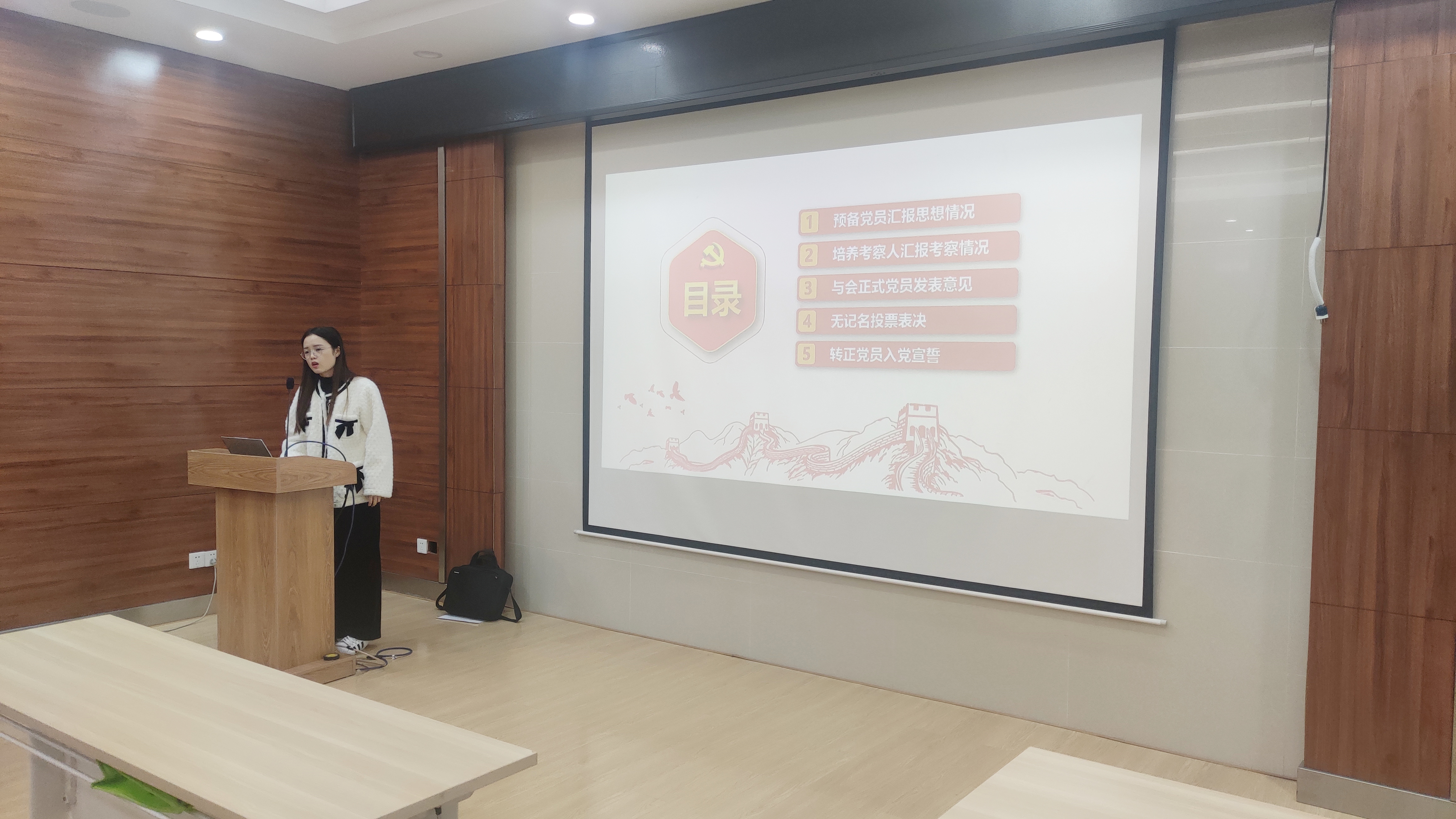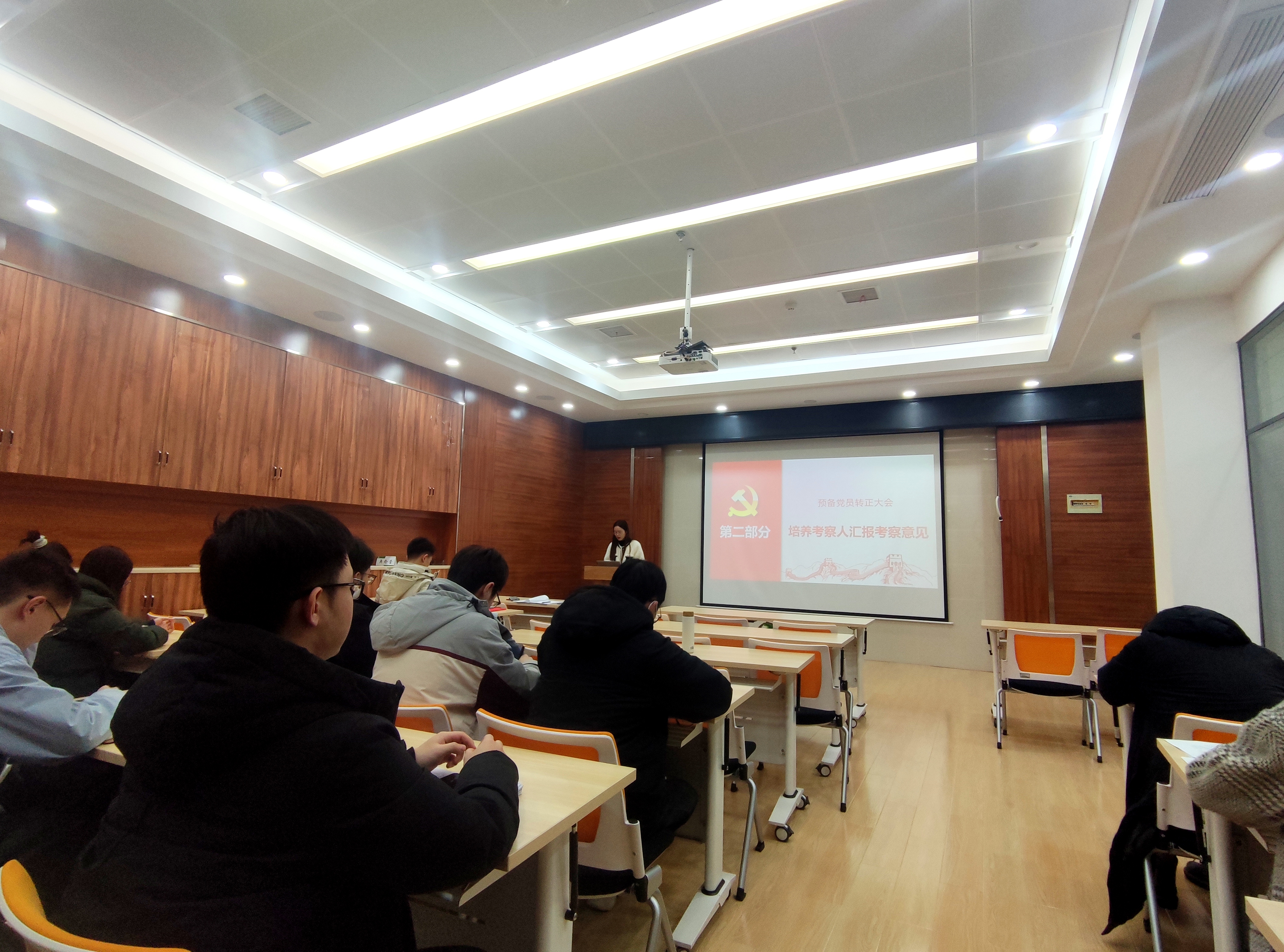 首先,预备党员唐春明、季小宇和马亚慧同志分别向党组织汇报了预备期间思想、生活、科研工作、对党的认识以及入党动机等需要对党说明的问题;再由各自的两位入党介绍人分别介绍转正申请人在预备期间的表现情况并一致同意如期转正;报告完毕后,与会党员对三位同志能否如期转正分别发表了意见,一致认为其符合共产党员的标准;经与会的正式党员无记名投票,党支部书记汤慧玲同志宣布,唐春明、季小宇和马亚慧同志全票通过并如期转为中共正式党员;最后,由党支部书记汤慧玲同志带领唐春明、季小宇和马亚慧同志进行入党宣誓。