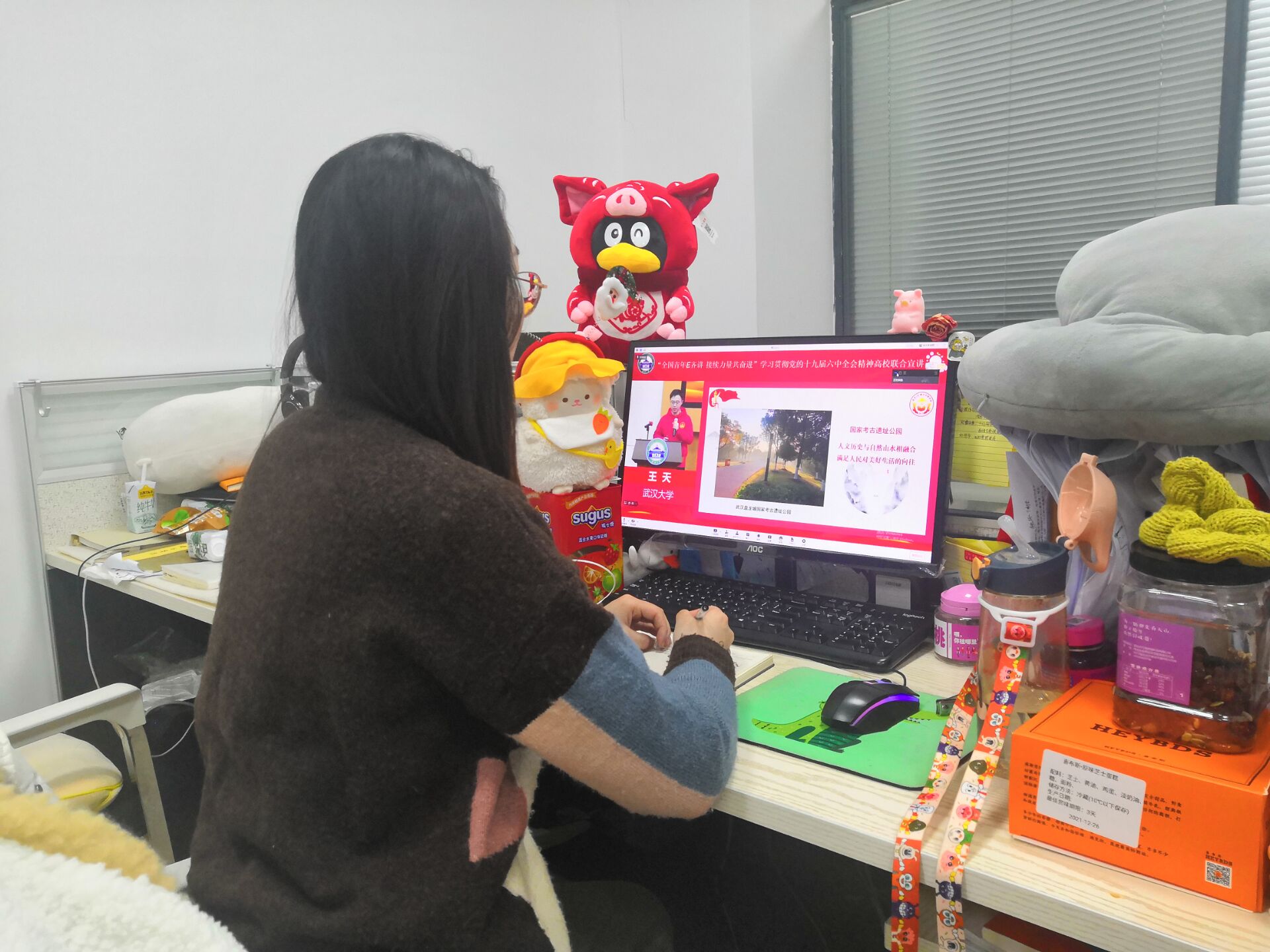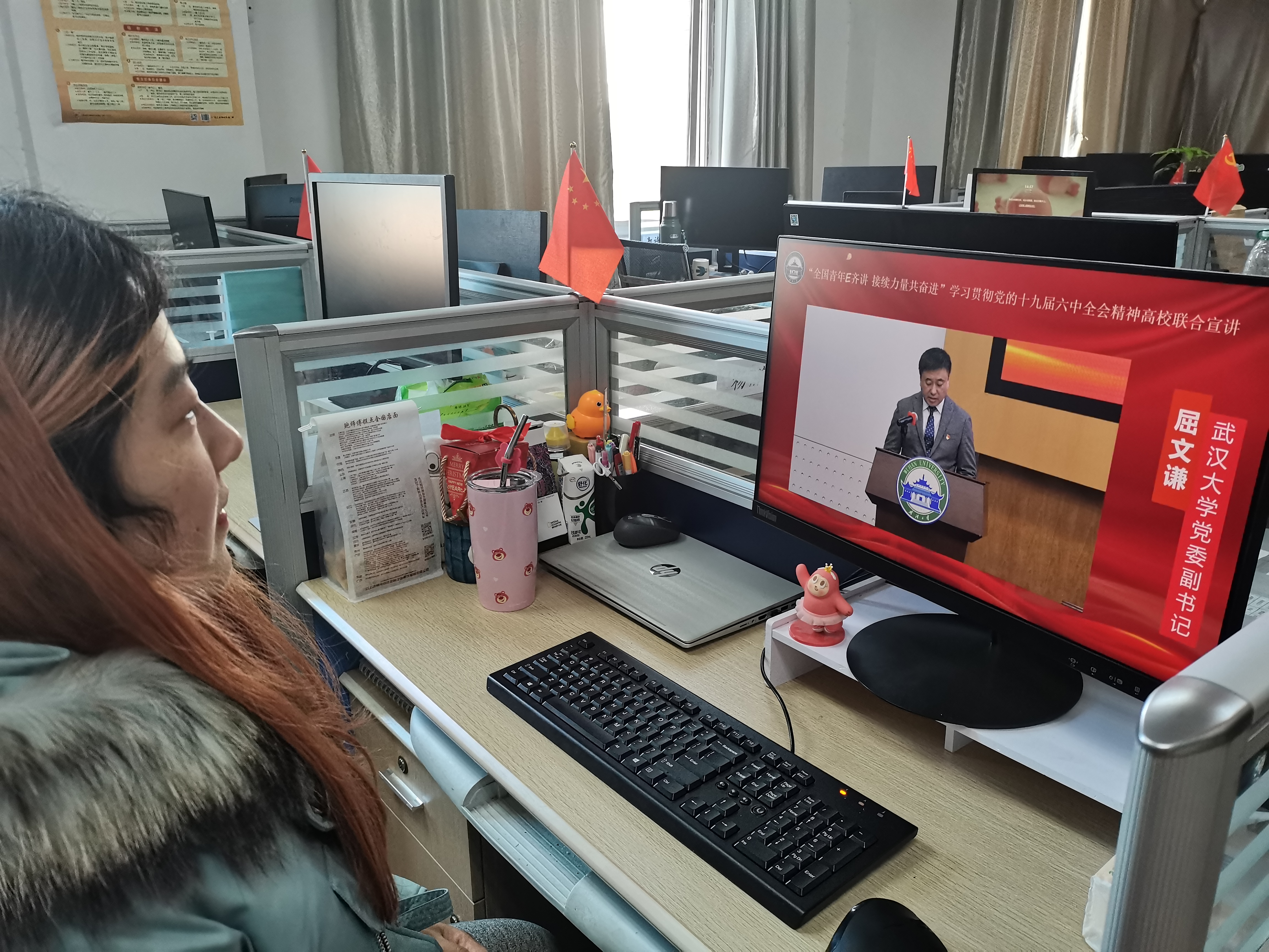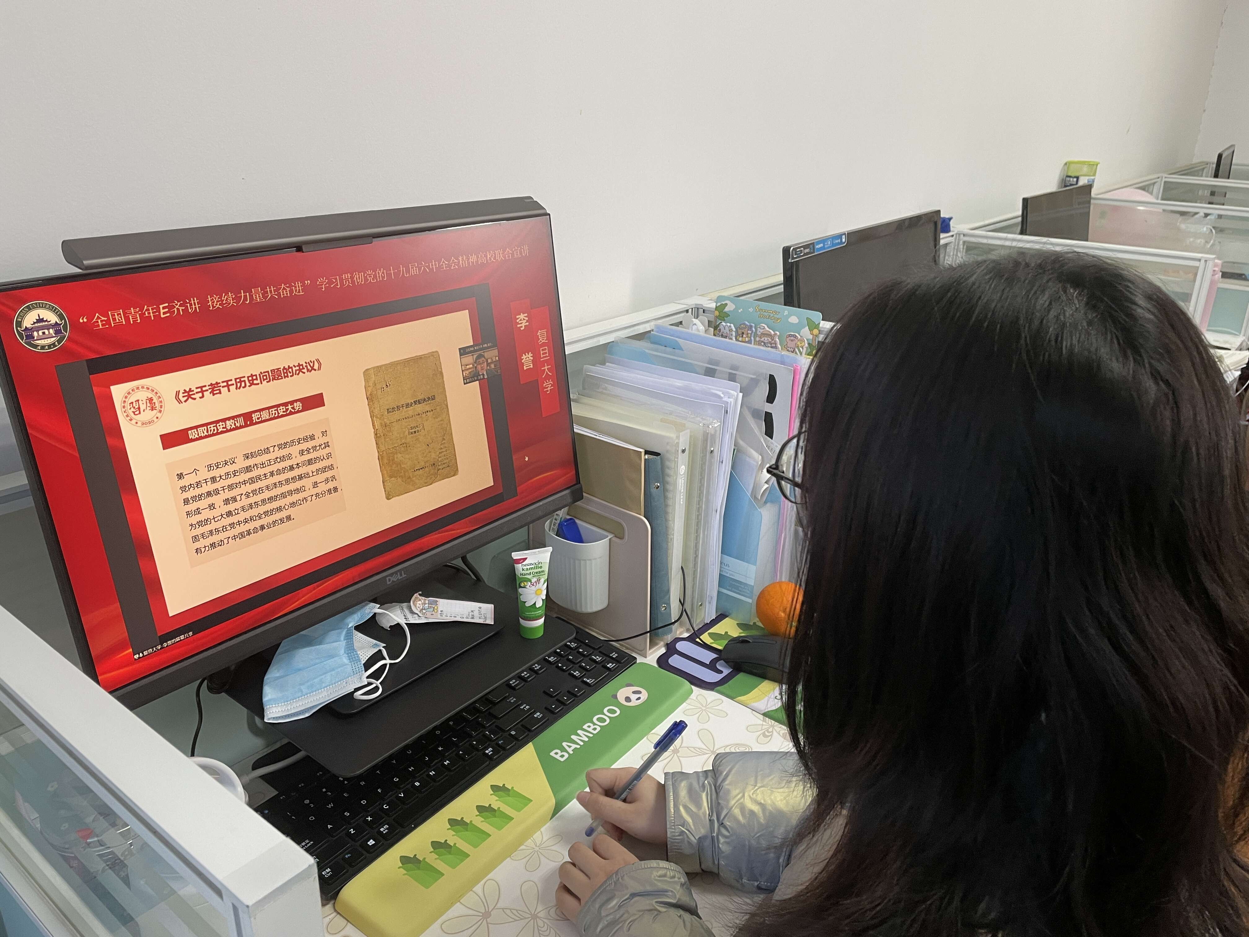 周荷欣:今天党支部组织观看了“全国青年E齐讲,接续力量共奋进”学习贯彻党的十九届六中全会精神的高校联合宣讲。作为一名硕士研究生党员,我将在科研学习中贯彻党的十九届六中全会精神,牢记习近平总书记的嘱托,信心满怀、斗志昂扬,以青春之我,奉献青春之国家,把人生理想融入国家和民族的伟大梦想之中,努力成长为担当民族复兴重任的时代新人。