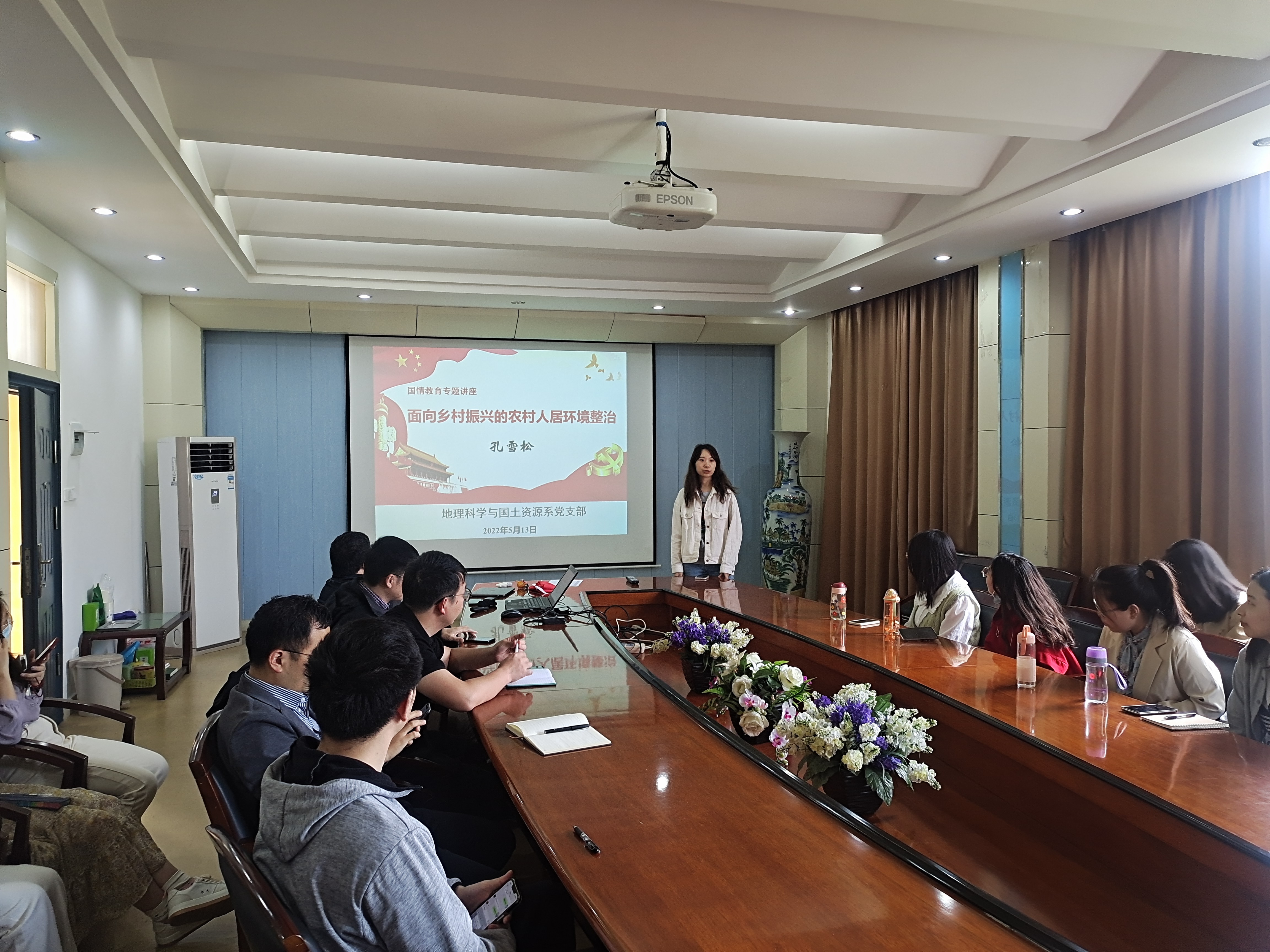 2022年5月13日下午15:00,地理科学与国土资源系教师党支部与研究生第三党支部在学院301会议室联合开展了“师生共建微党课”主题党日活动。此次活动由教师党支部刘殿锋老师、孔雪松老师作为主讲人进行微党课讲授,同时邀请教师党支部支委胡元超老师、许刚老师和学院辅导员李韩老师出席。会议由支部副书记雷玮倩同志主持,学生党支部党员、发展对象及入党积极分子参与此次活动。