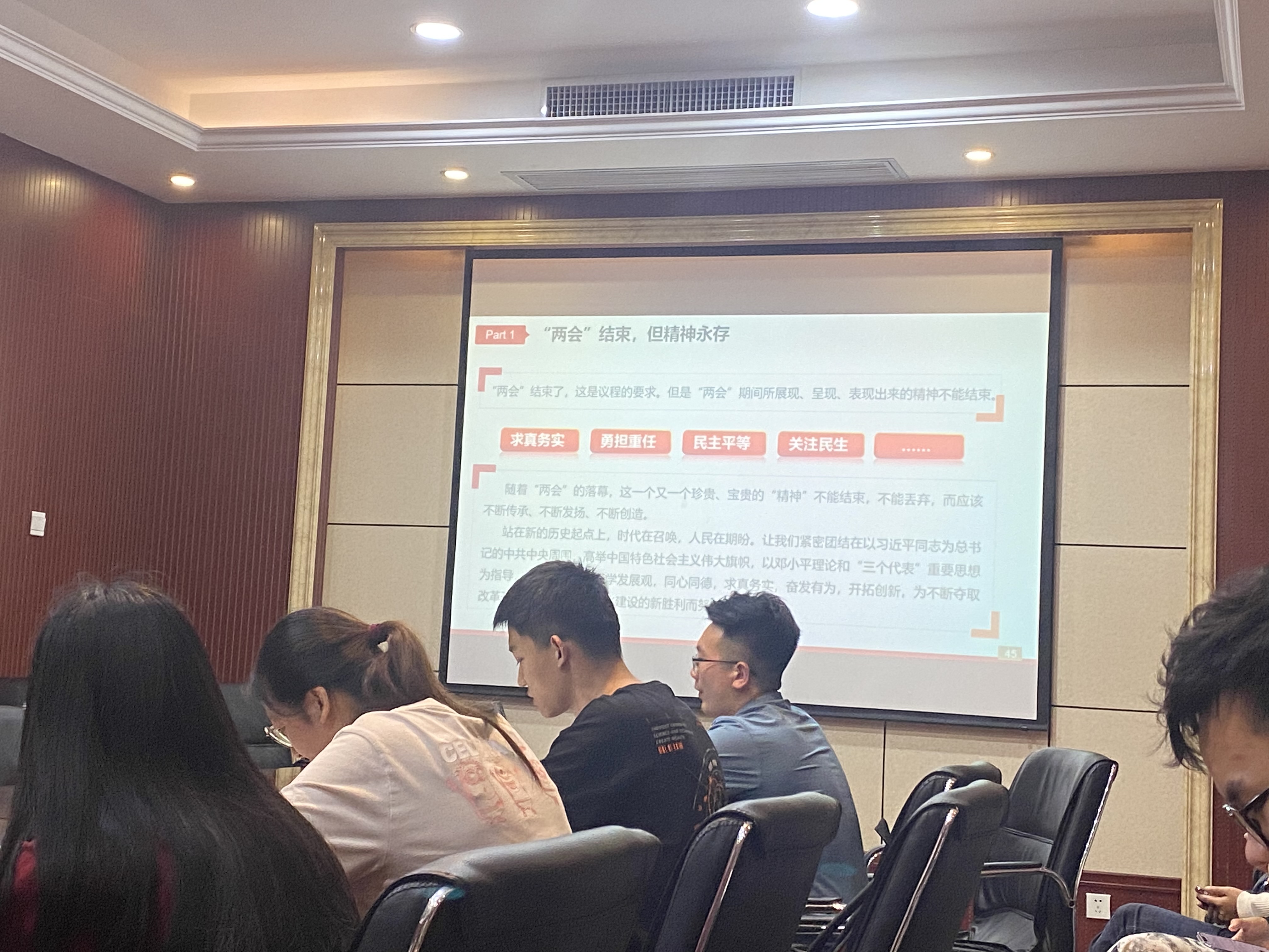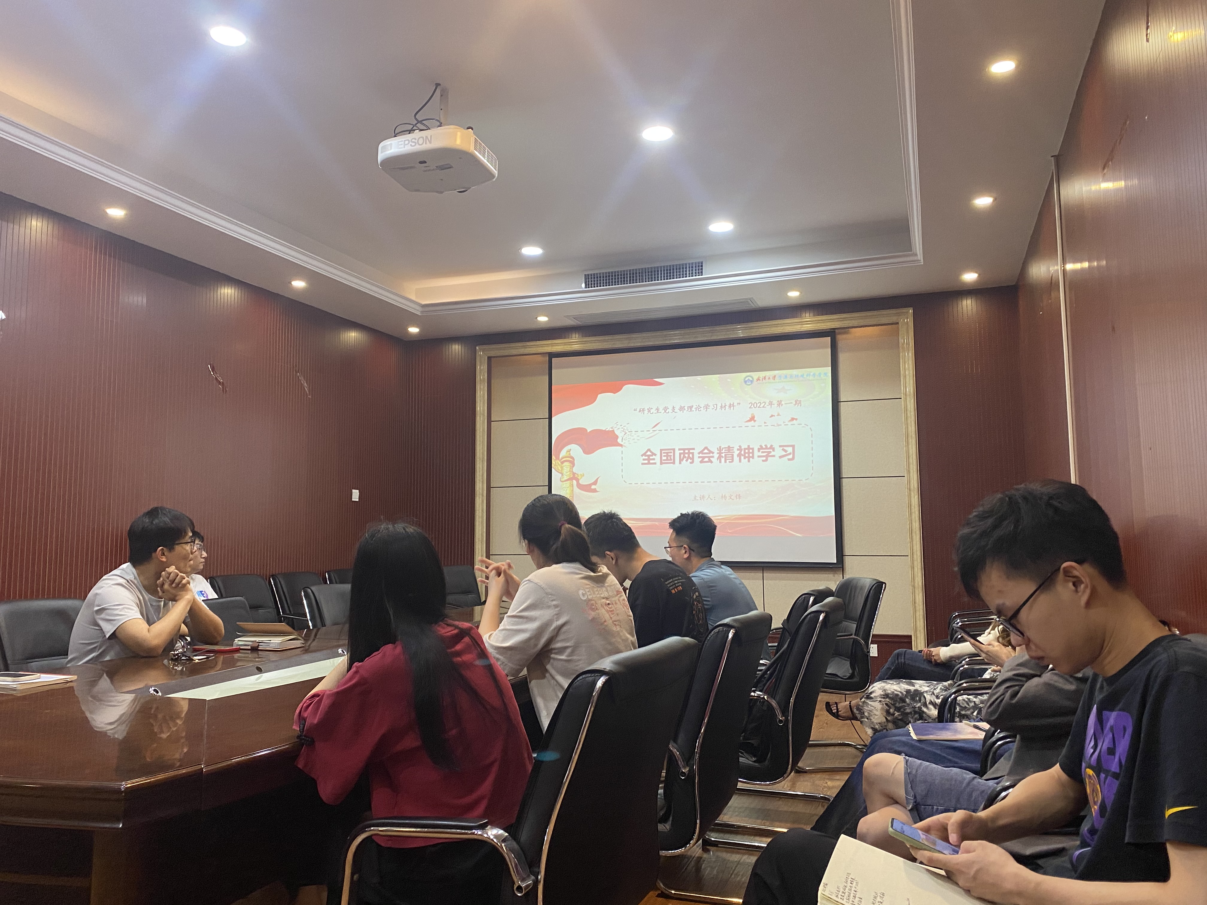 2022年4月28日晚上19:30,环境科学与工程系研究生第二党支部在学院504会议室召开学习两会精神主题党日活动暨支部大会。会议由支部书记朱磊同志主持,出席会议的正式党员应到19人,实到14人,超过应到会有表决权党员的半数,预备党员应到8人,实到8人。