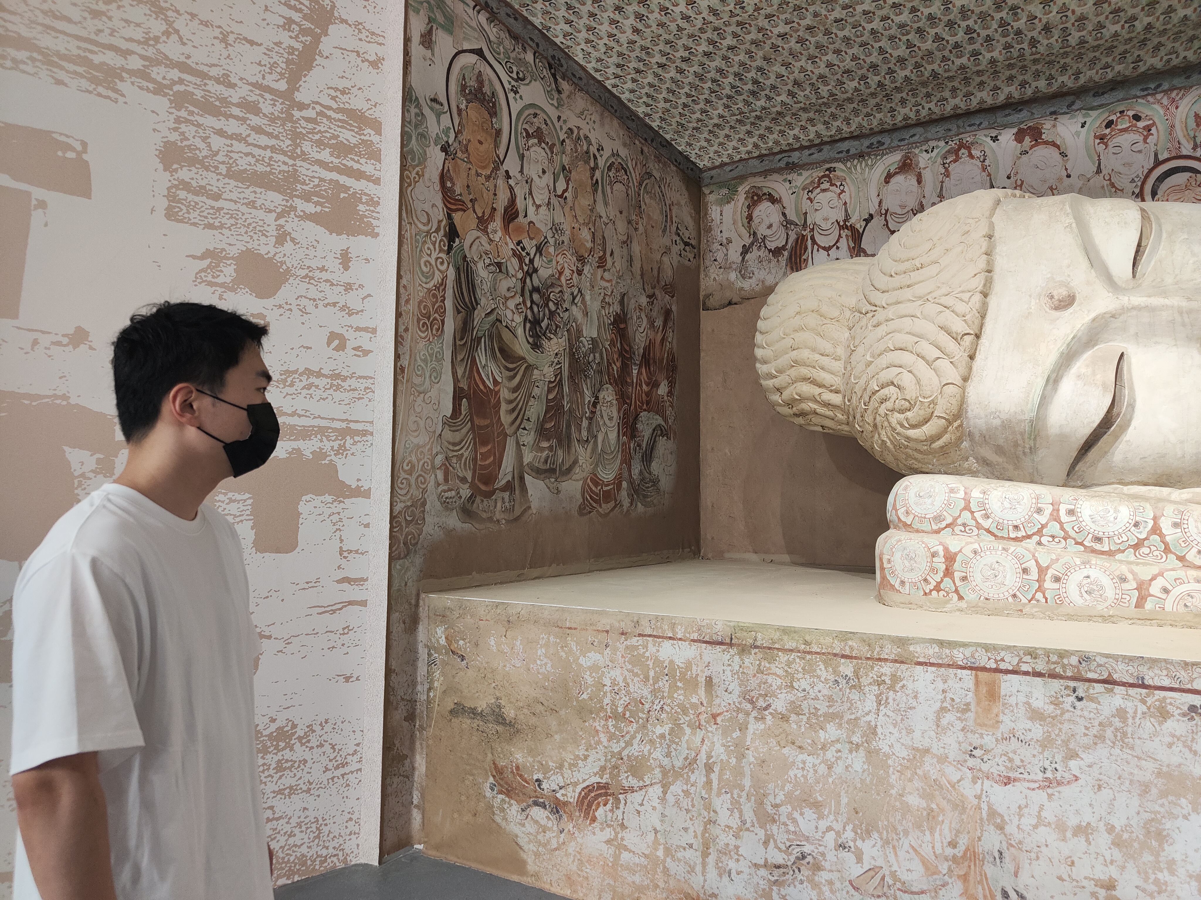 支部同志跟随着讲解员的解说,参观了敦煌第158、285、17、275号复原洞窟、12铺壁画临本,以及《刺绣说法图》、《大般涅槃经卷第八如来性品第四之五》、《番汉合时掌中珠》等出土文物,感受到了敦煌涅槃之境,领略到了敦煌壁画之美。