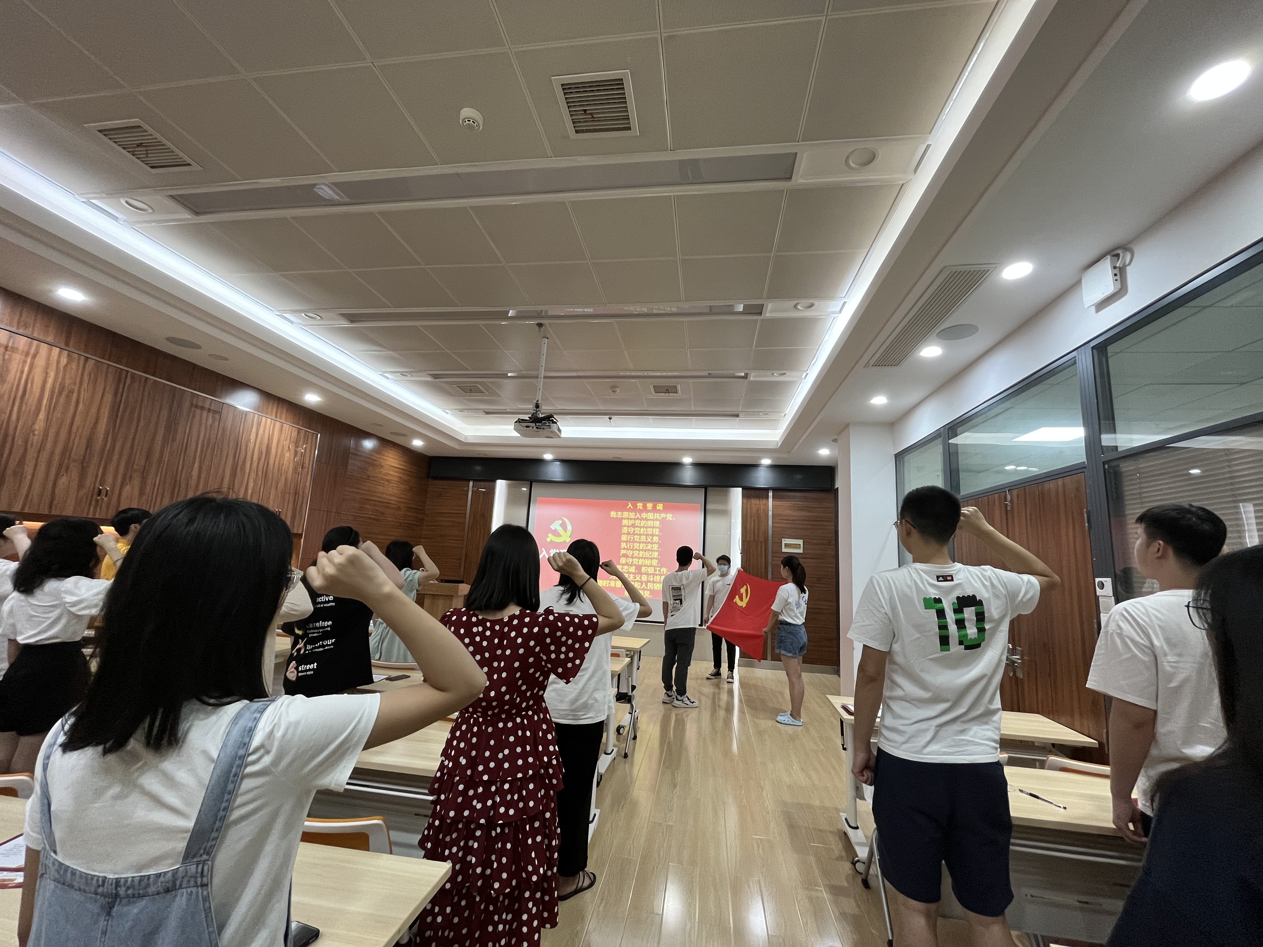 其后,蒋江俊男同志进行了表态,向党组织表达了自身的决心与信心;最后,全体党员在程鹏同志的带领下重温入党誓词。