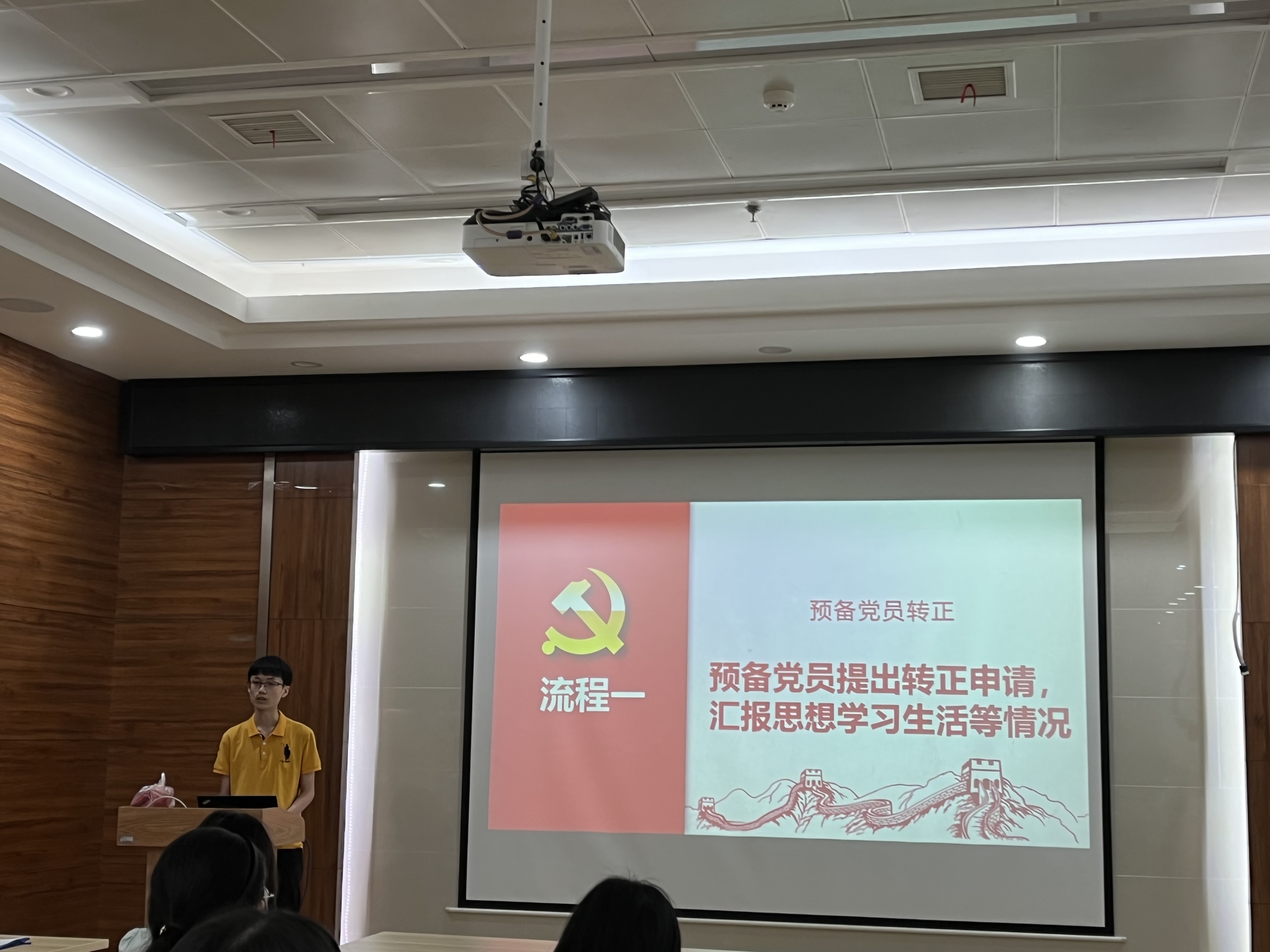 2022年6月14日晚19:00,地理科学与国土资源系研究生第五党支部于电脑城429会议室召开预备党员转正大会暨经验分享活动。本次会议由党支部书记程鹏同志主持,主要包括讨论预备党员蒋江俊男同志转正、政治生日活动、支部委员会调整以及求职、升学等经验分享四项议程。