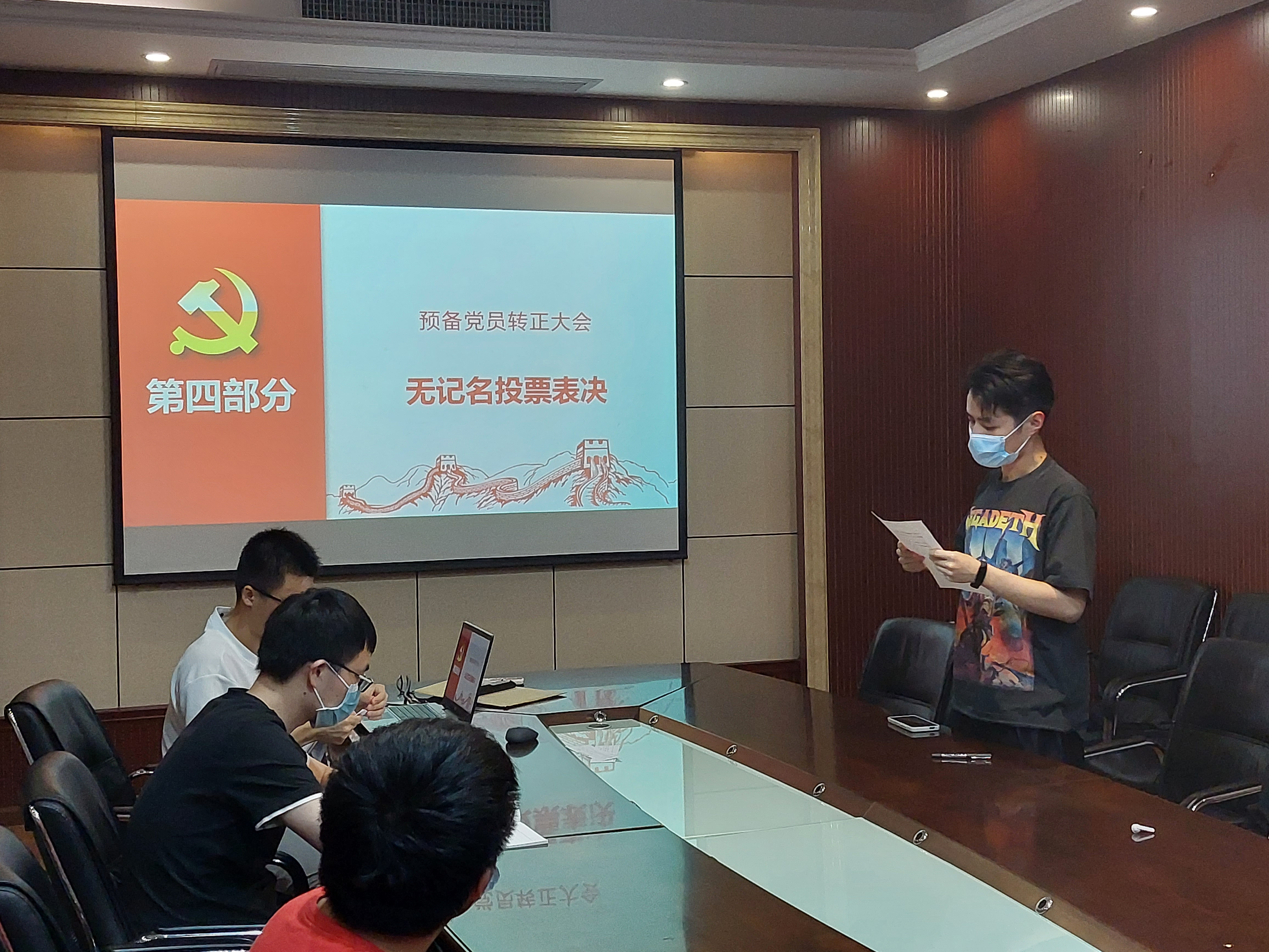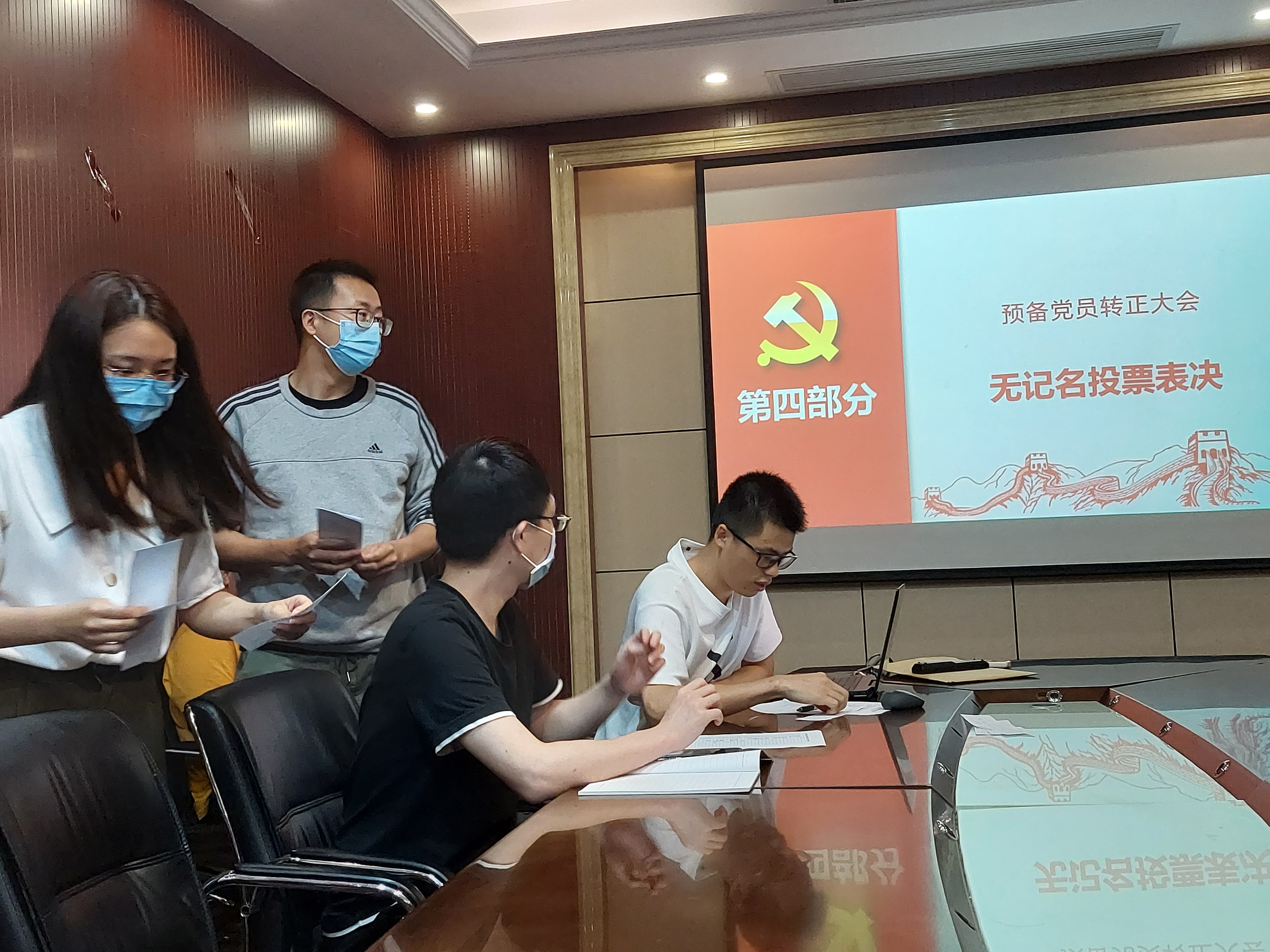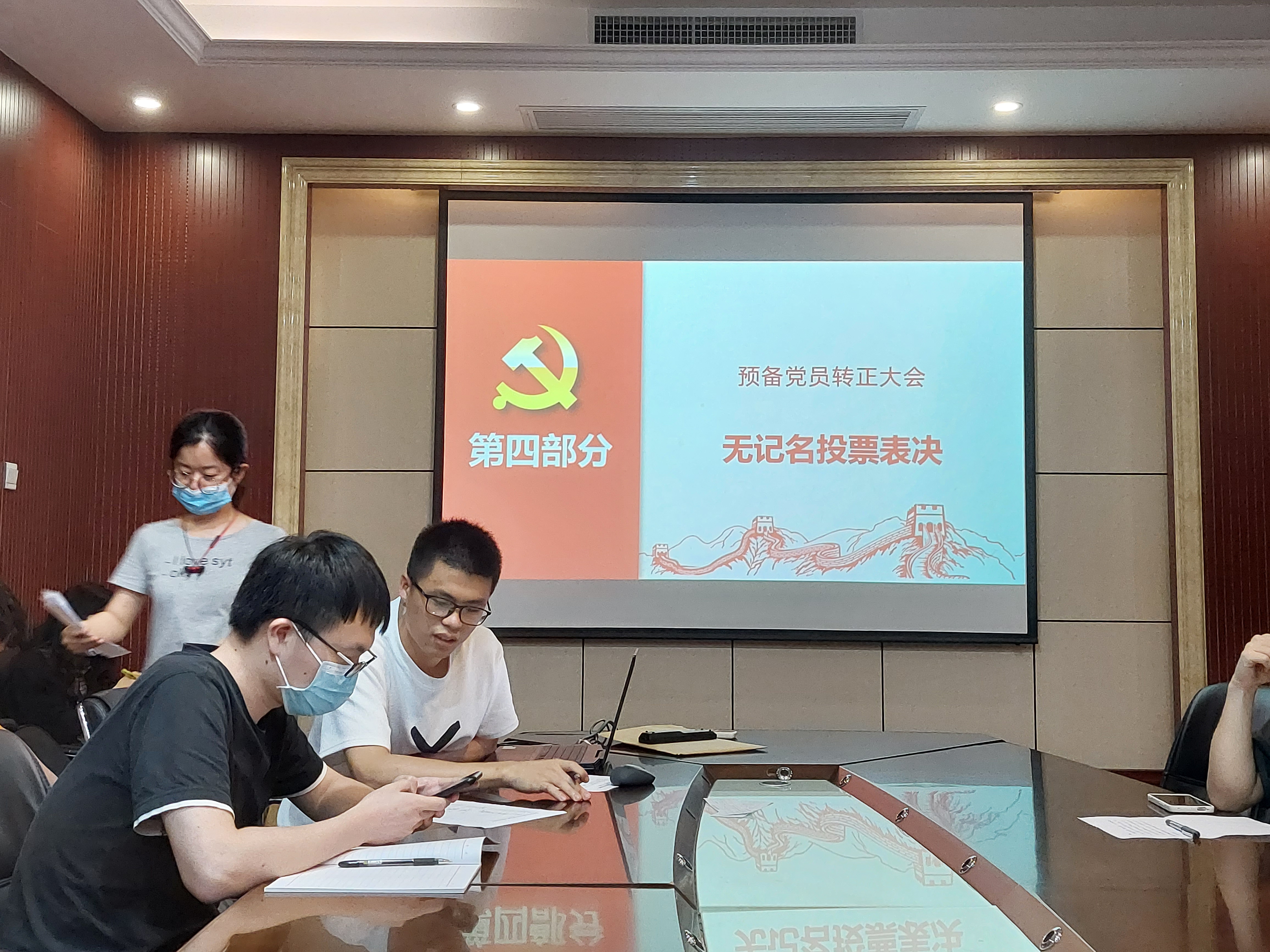 随后,参会的正式党员就焦德林同志的转正申请进行无记名投票。经过监票人、计票人发票,在投票结束后对投票结果进行唱票,全体党员一致通过了焦德林同志的转正申请。