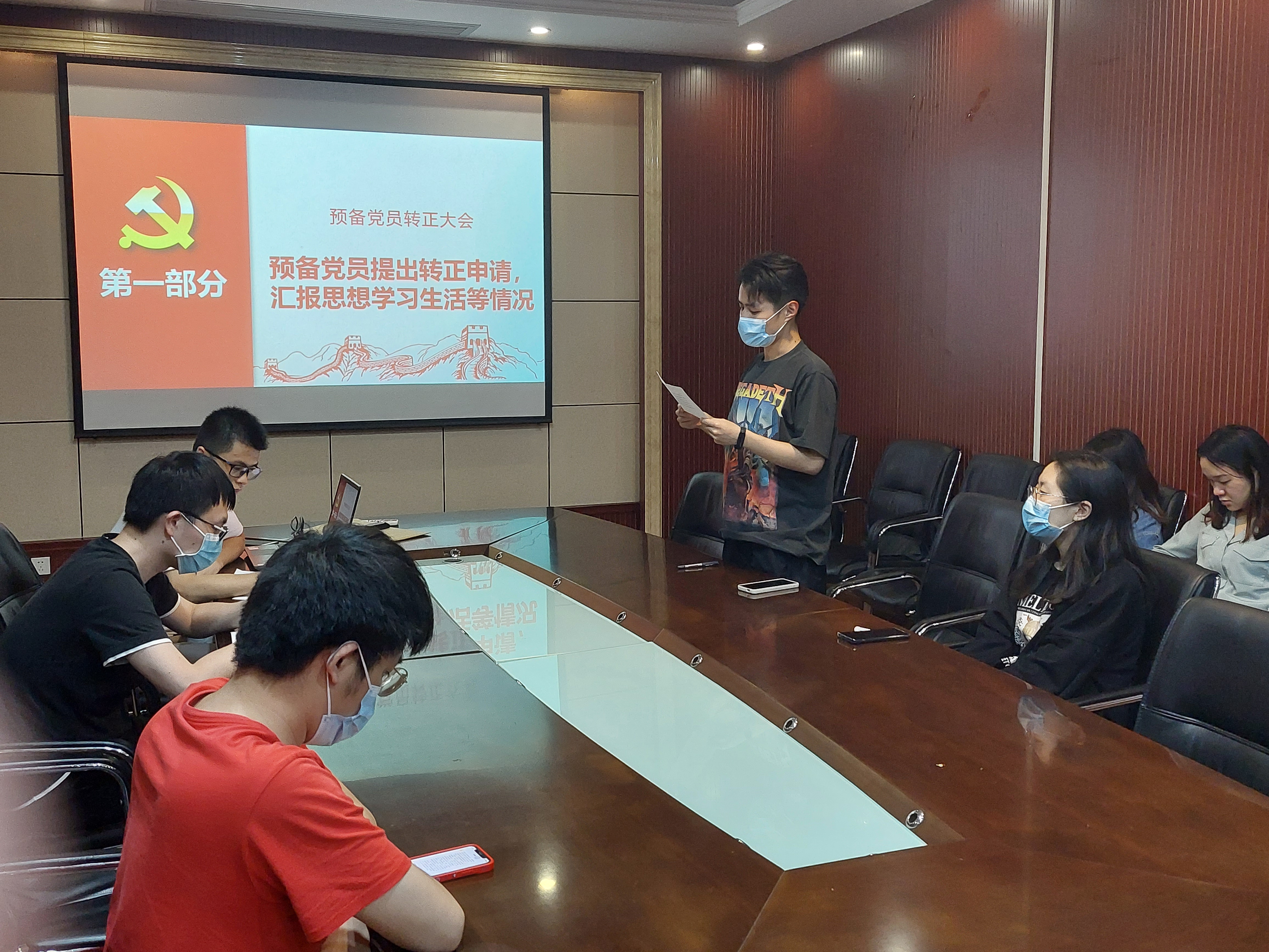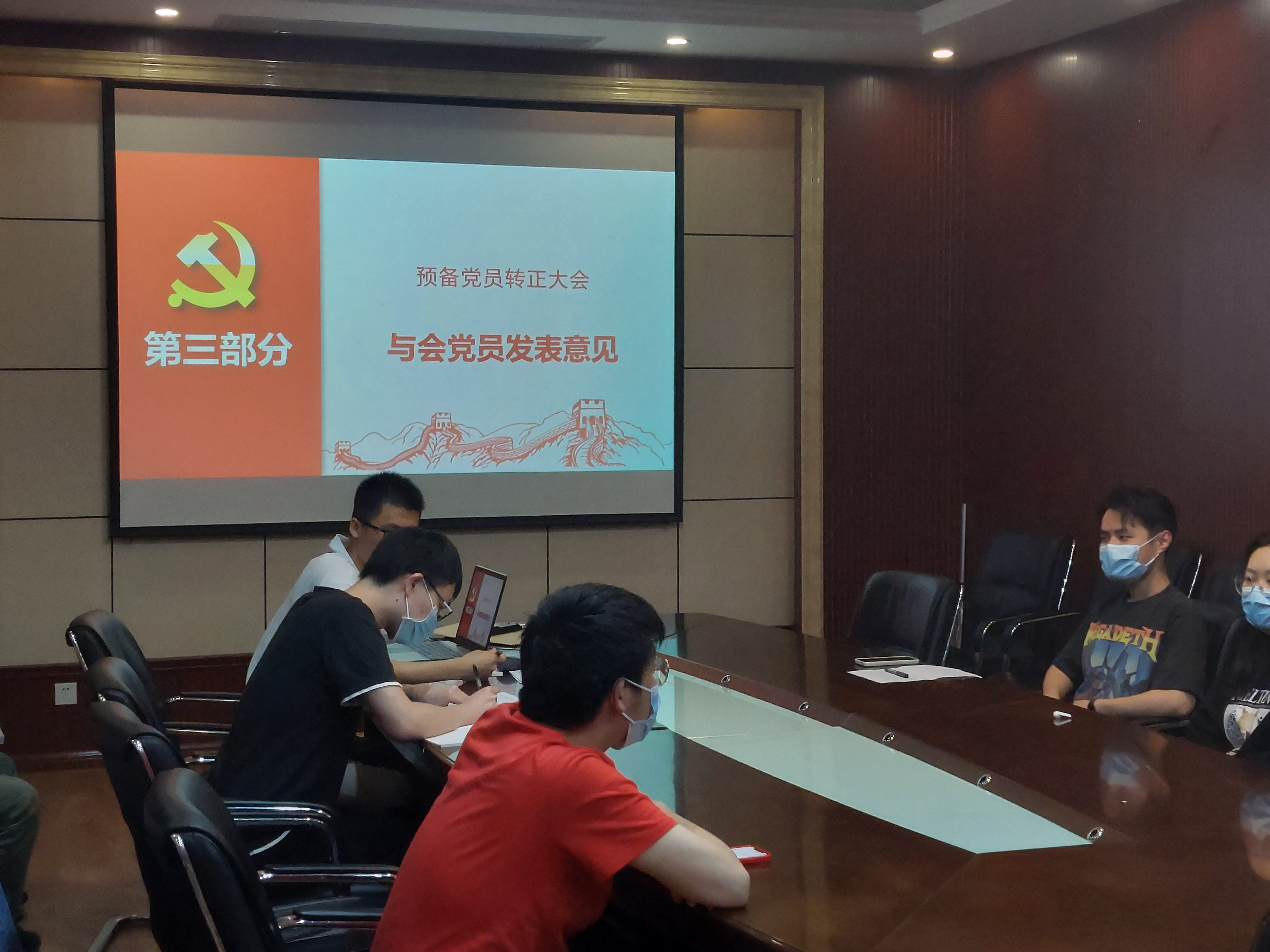 会议开始,由支部书记余华飞同志对本次会议的基本内容进行了介绍,主要内容包括讨论焦德林同志的转正申请和两会精神学习教育两个部分。首先,焦德林同志向组织汇报了自己在预备期间的工作学习情况,阐述了个人思想认识等方面的进步,表达了自身的转正意愿。