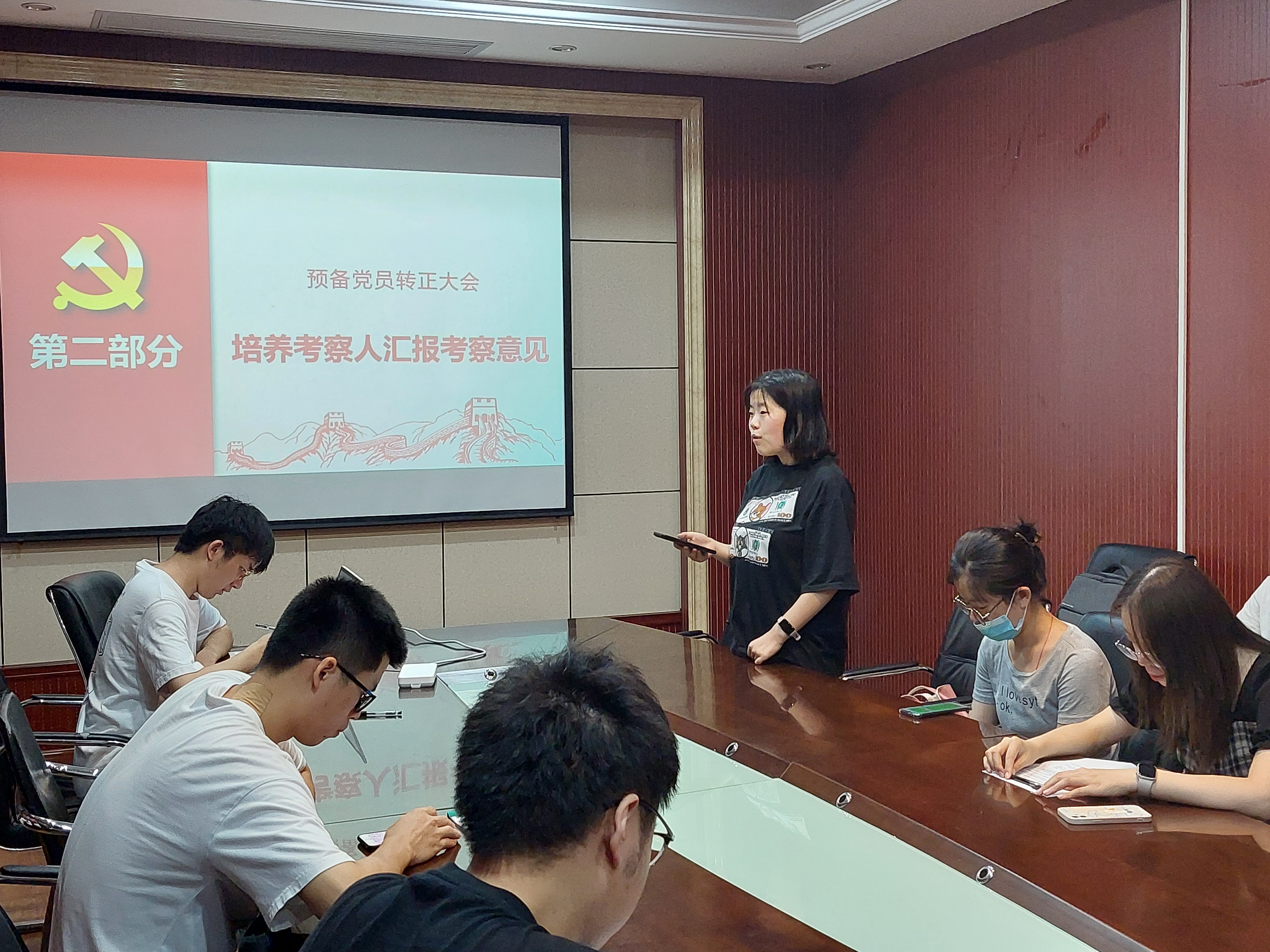 接着,郭英琦同志的培养考察人张羿琪同志与安佳燕同志、党蕊蓉同志的培养考察人邹仁伟同志与郭伟茹同志对两位同志在发展期间的工作学习情况进行了介绍,并对郭英琦同志和党蕊蓉同志在理论知识学习上的进步给予了肯定,并对其转正申请表示同意。