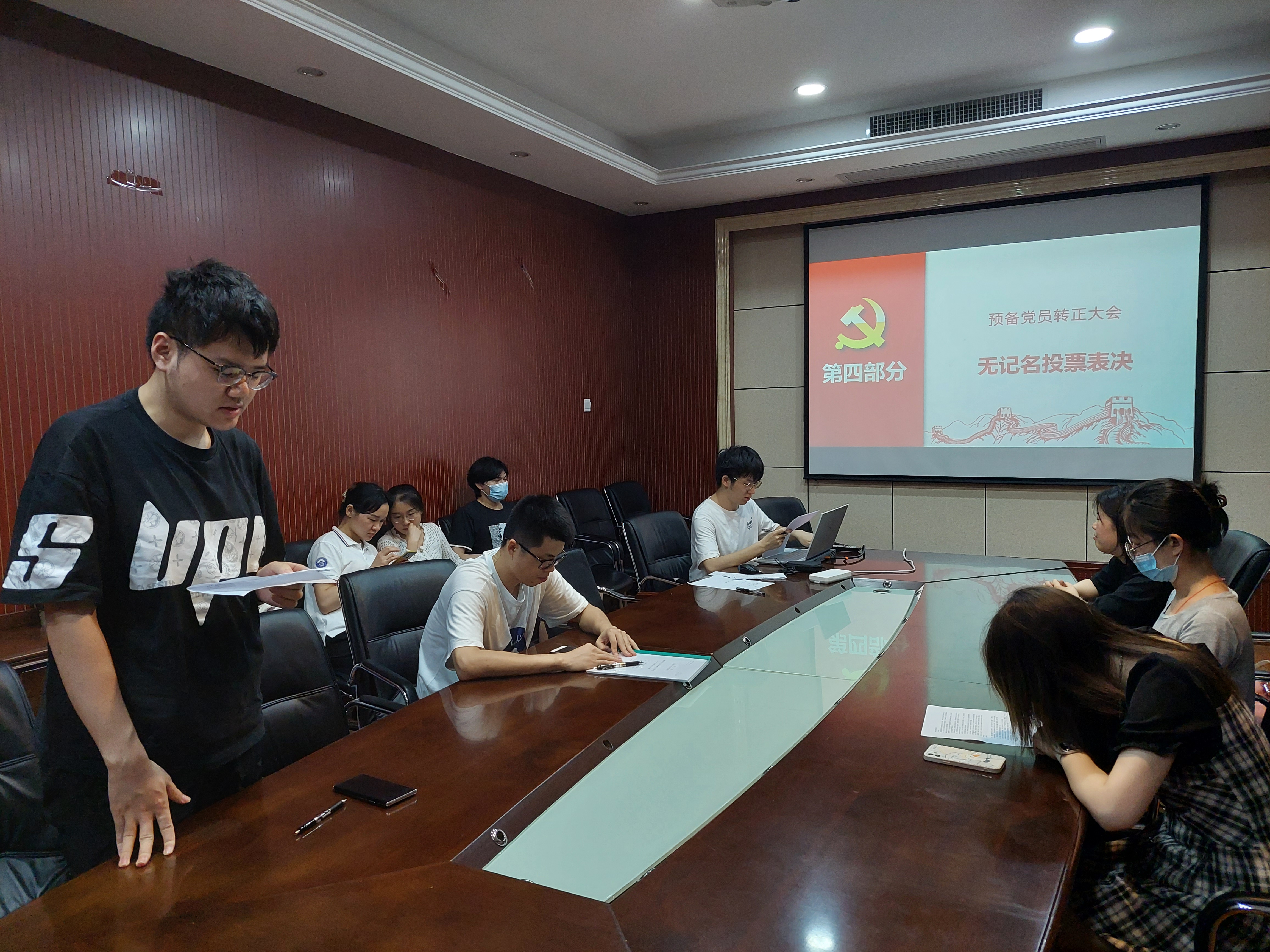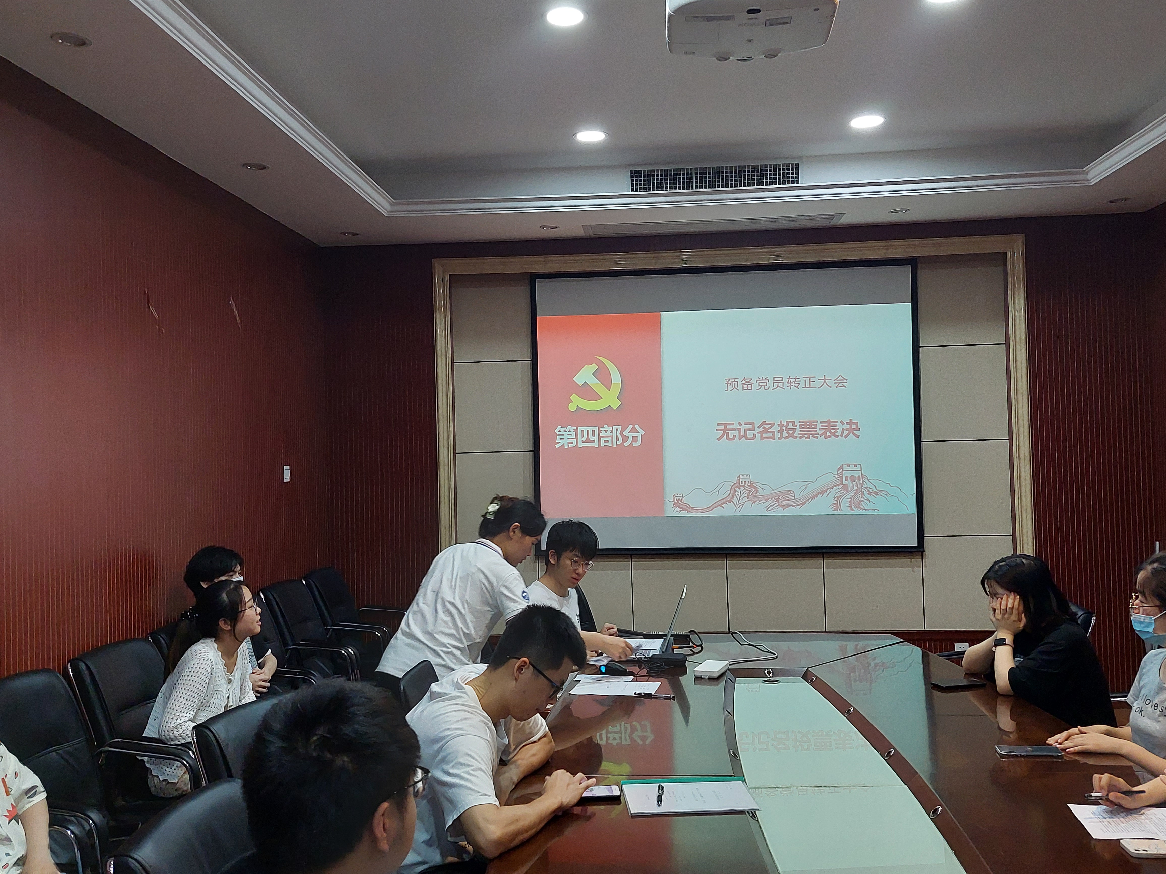 随后,参会的正式党员就郭英琦同志和党蕊蓉同志的转正申请进行无记名投票。经过监票人、计票人发票,在投票结束后对投票结果进行唱票,全体党员一致通过了郭英琦同志和党蕊蓉同志的转正申请。