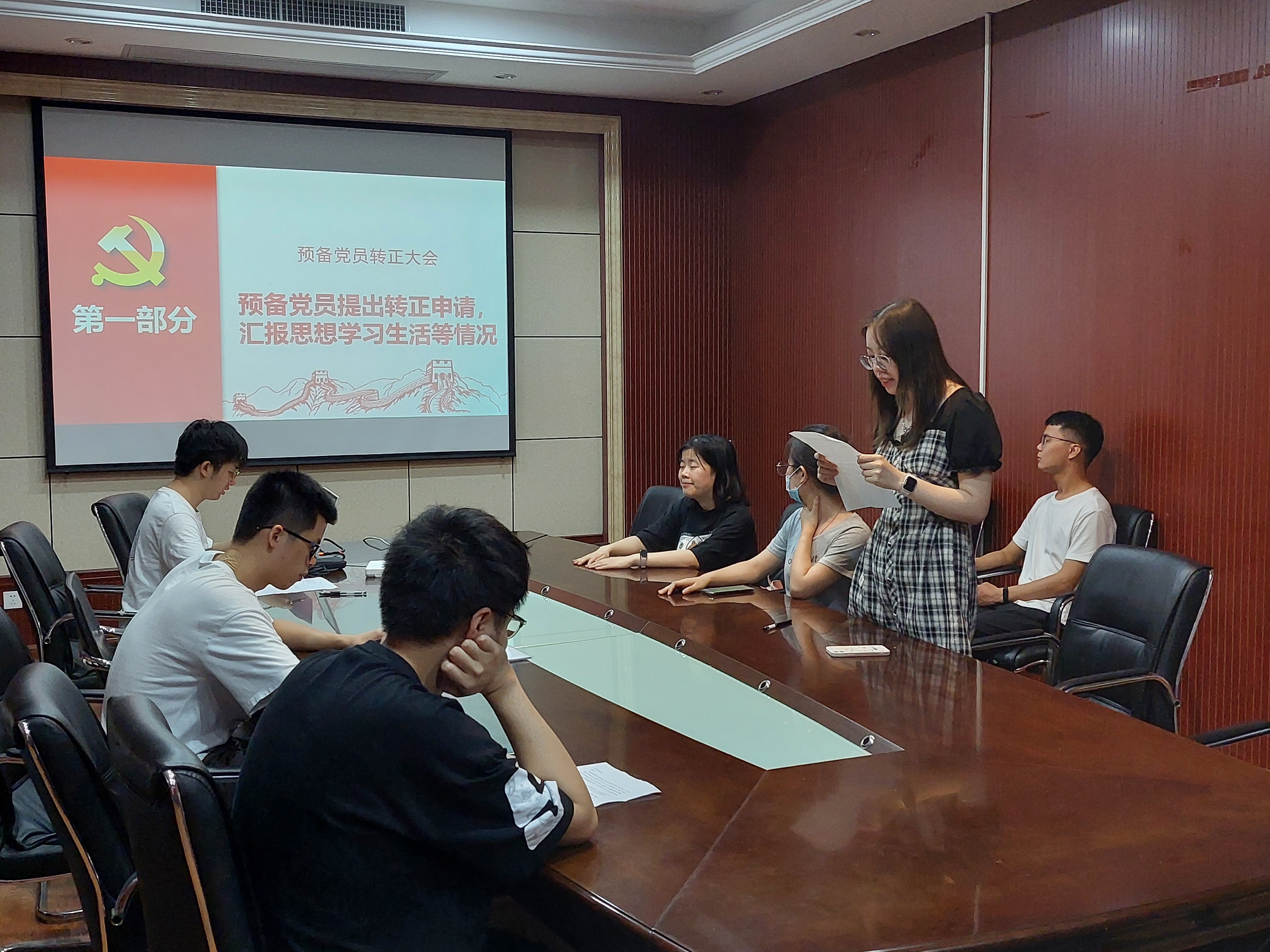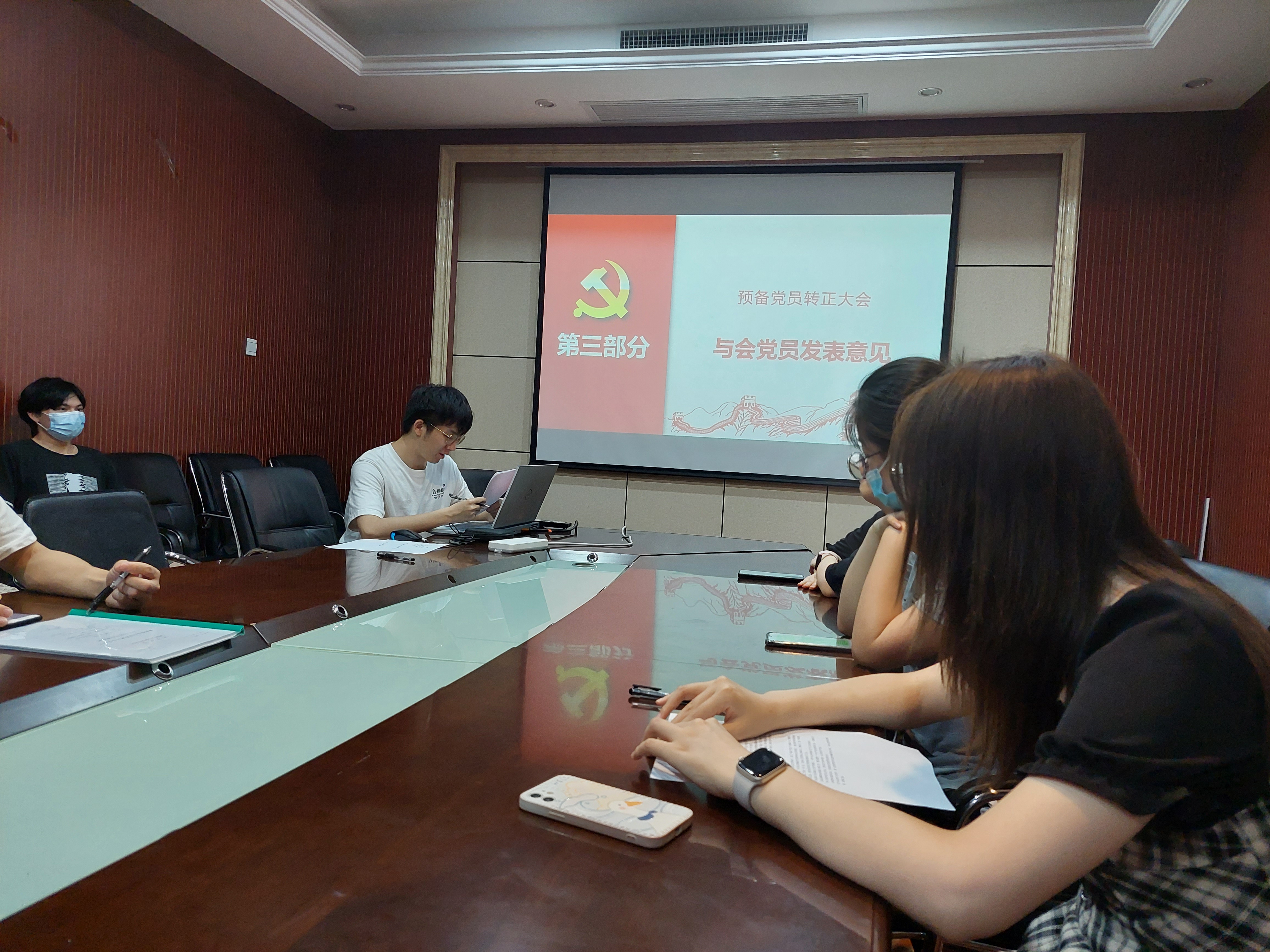 504会议室召开预备党员转正大会。本次会议由支部书记邹仁伟同志主持,主要内容包括郭英琦同志和党蕊蓉同志的预备党员转正讨论。本次会议应到正式党员及预备党员23人,实到参会党员15人,发展对象与入党积极分子也参与了会议。