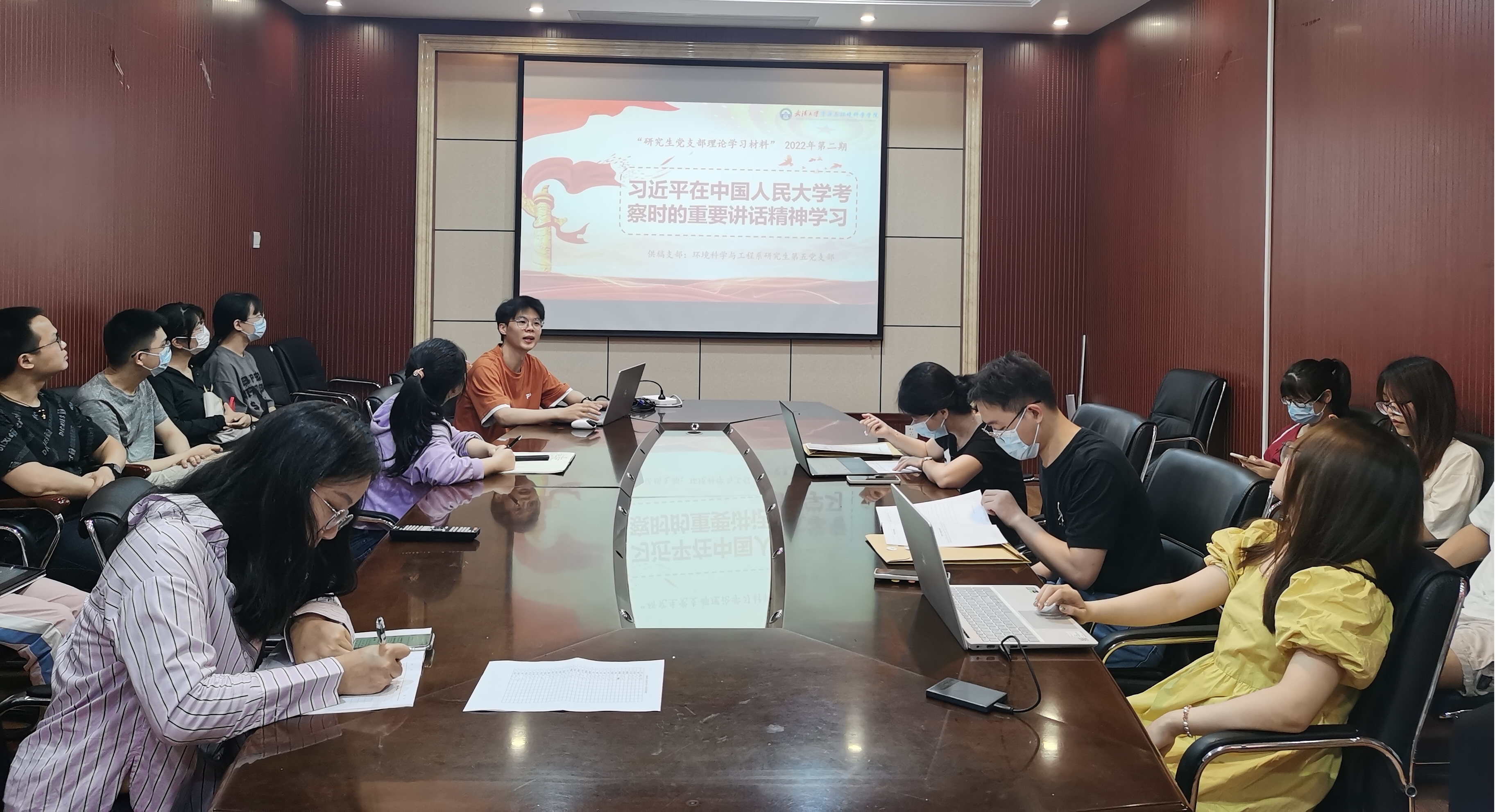 504会议室召开学习“习近平总书记在中国人民大学考察时的重要讲话精神”主题党日活动。会议由党支部书记苏会钰同志主持,支部党员及发展对象、入党积极分子、入党申请人参与此次会议。