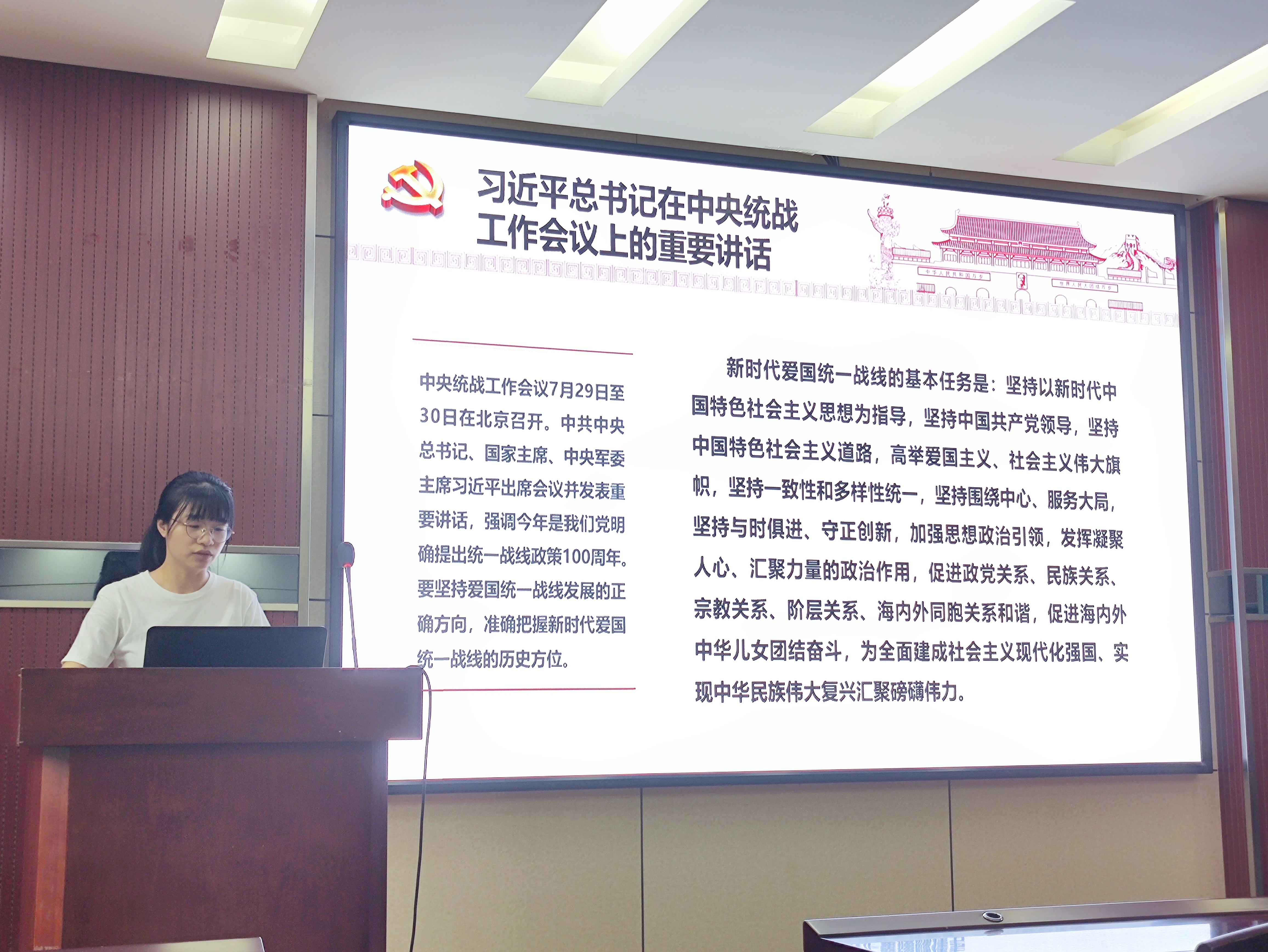 会议第三项,学习习近平总书记在中央统战工作会议上的讲话精神:促进海内外中华儿女团结奋斗为中华民族伟大复兴汇聚伟力。支部成员学习了解统一战线的历史意义和不同时期的重要作用,深入学习新时代爱国统一战线的基本任务。2022年是我党明确提出统一战线政策100周年,要坚持爱国统一战线发展的正确方向,准确把握新时代爱国统一战线的历史方位。
