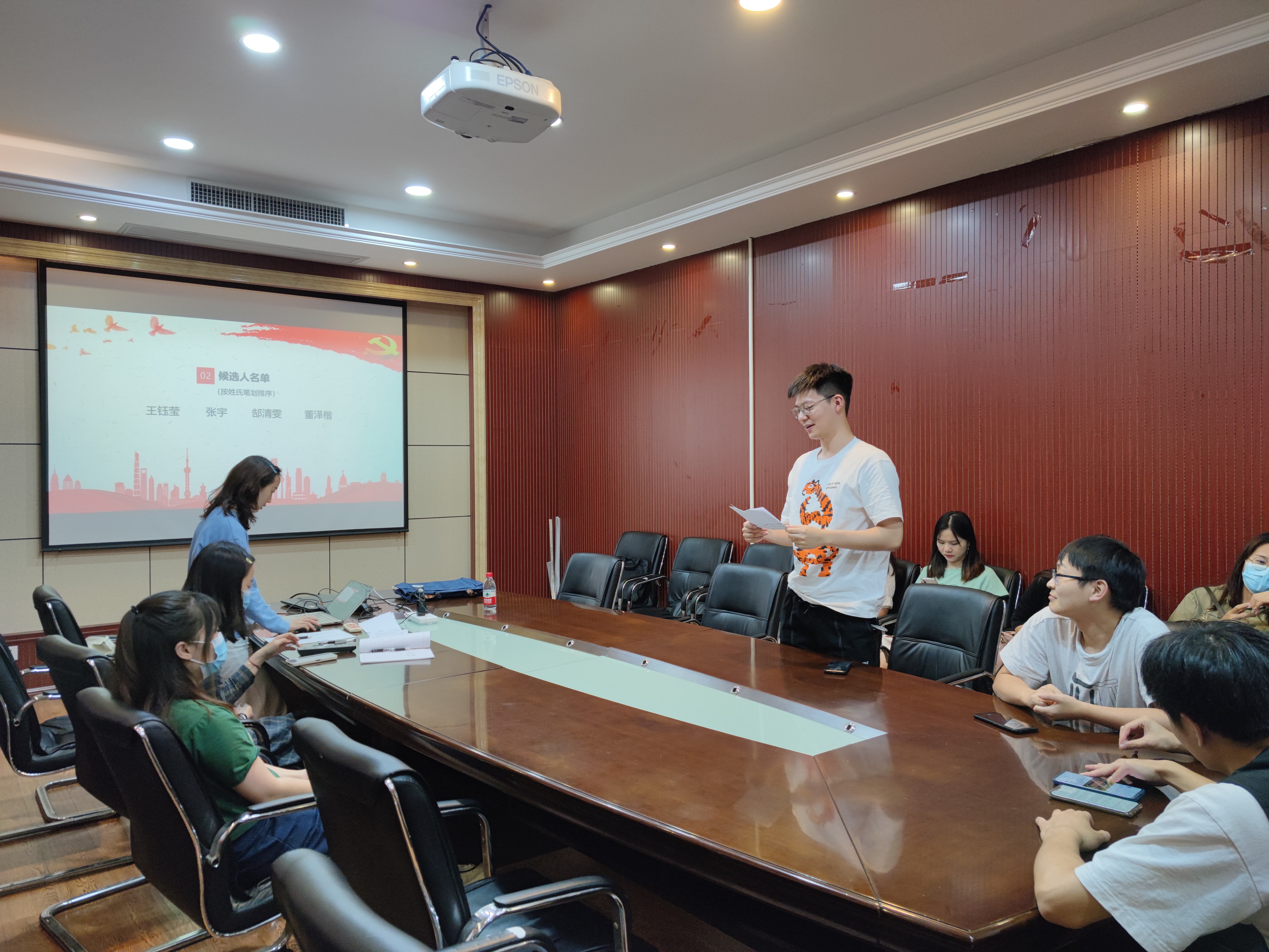 会议第二项,支委调整。王钰莹、张宇、郜清雯、董泽楷四位候选人依次进行竞选发言,同时与会党员发表意见、积极讨论。最后由正式党员进行无记名投票并现场公布投票结果,经表决,四位同志得到党支部大会的一致认可。会后,党支部委员进行了第一次支部委员会议,选举出王钰莹同志担任党支部书记,张宇同志担任纪律委员,郜清雯同志担任宣传委员,董泽楷同志担任组织委员。