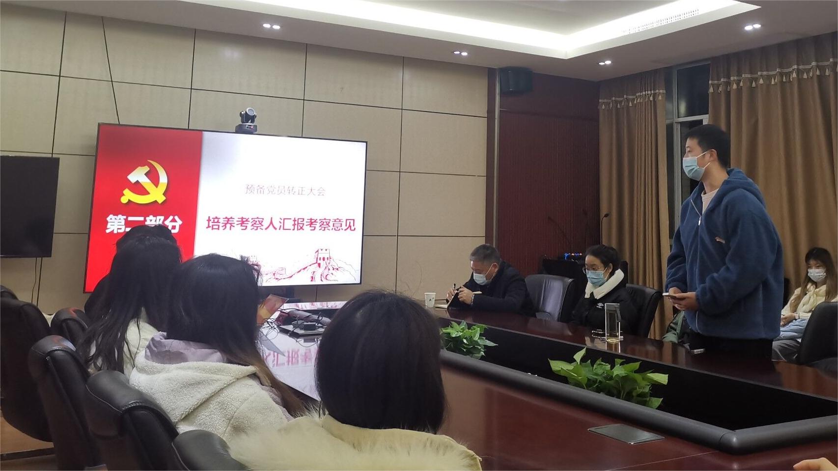 随后董玥、韩雨婧同志的培养考察人报告了两位同志在预备期间的教育考察情况,对其的教育经历、学习、思想情况等进行了介绍,充分肯定了两位同志在生活与思想上的进步,并同意两位同志的转正申请。同时与会党员积极发表意见,对两位同志在理论思想、科研学习、生活工作等方面的表现与不足进行了客观的评价。