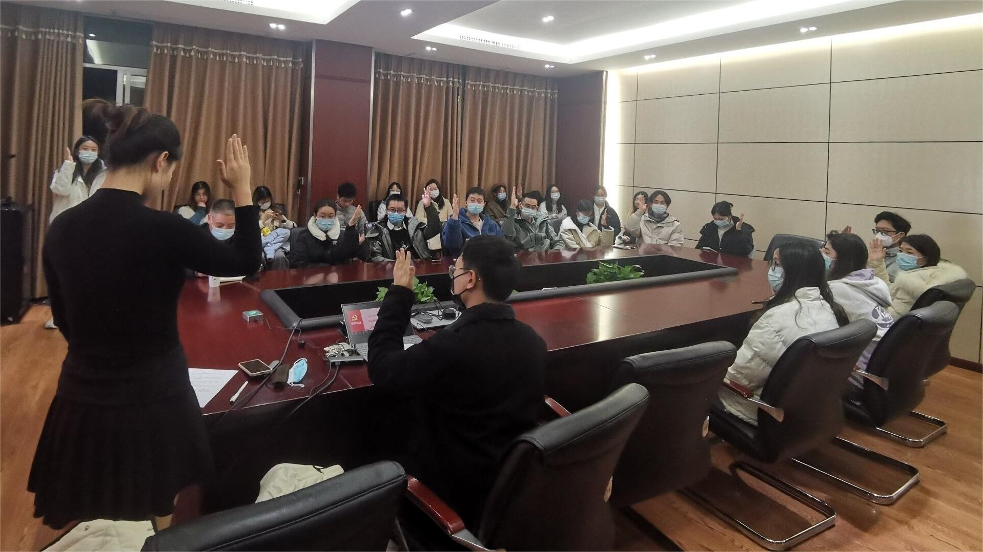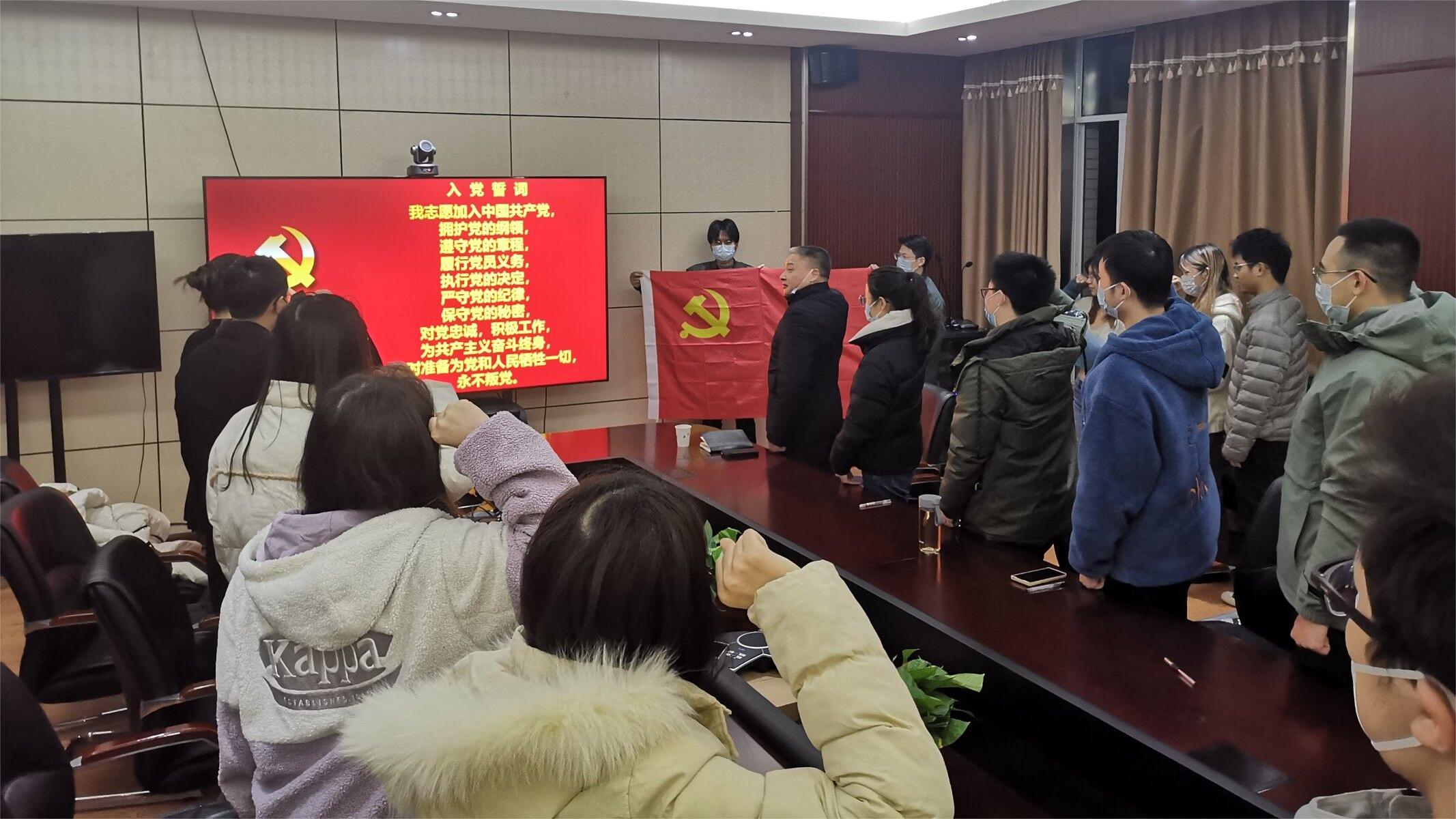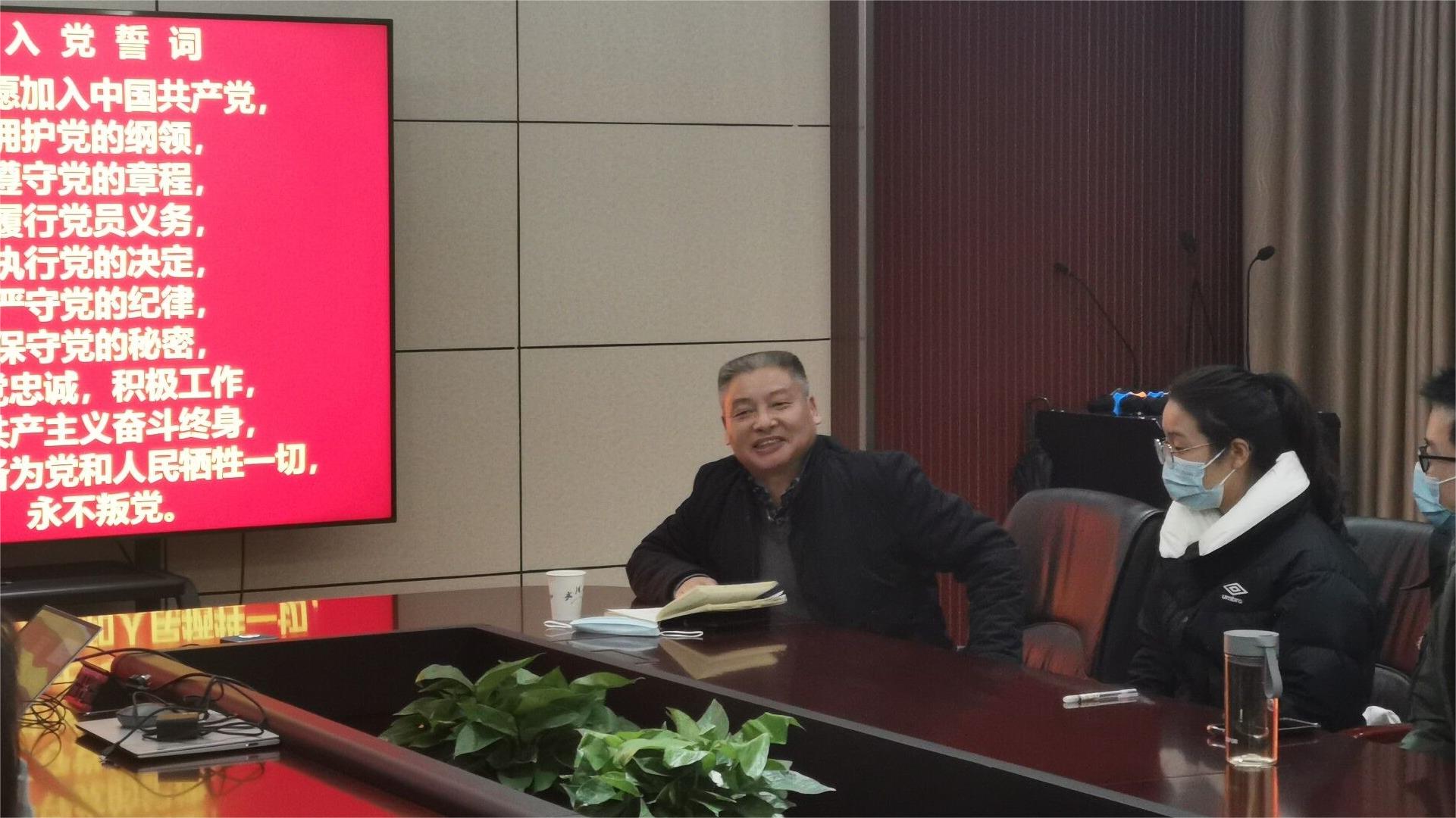 最后,由刘兴国老师带领董玥及韩雨婧同志及与会党员一起重温入党誓词,重温入党的决心与信念。