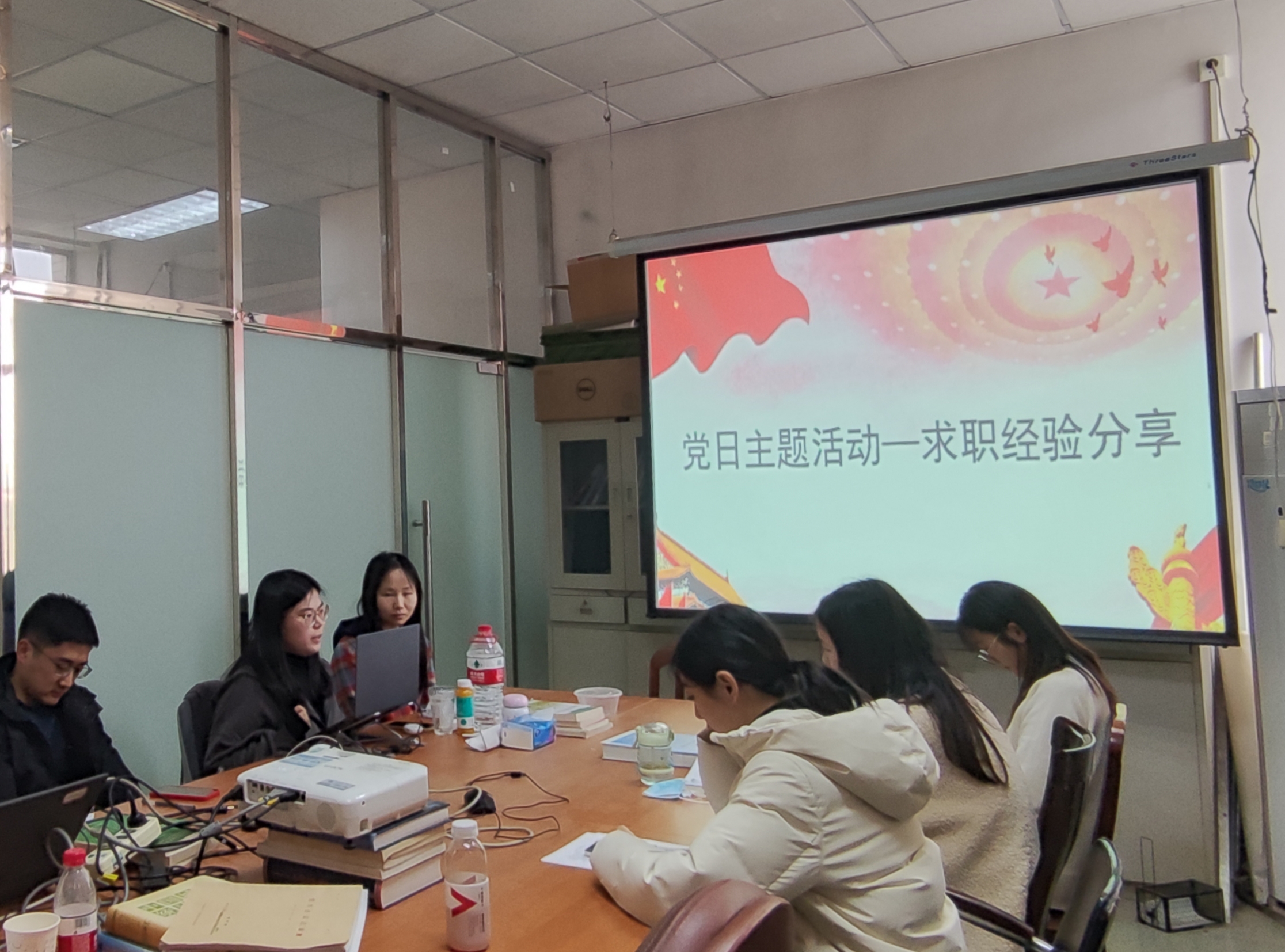 会议第三项,求职经验分享主题党日活动。