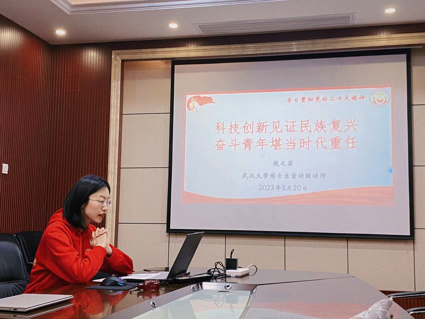 博士生宣讲团的赵之若以“科技创新见证民族复兴,奋斗青年堪当时代重任”为主题,强调了新时代背景下科技创新的重要性,并就二十大以来对科技创新的新论断、新阐释、新部署作全面梳理。当前,科技创新在见证脱贫攻坚、助力乡村振兴方面已取得显著成效,当代中国青年正当时。武大测绘薪火相传,让千年敦煌在数字中“永生”,“启明星”冉冉升起,仰望星空的故事未完待续,支部成员深有所感,新时代青年当勇站“C位”,携手共行。