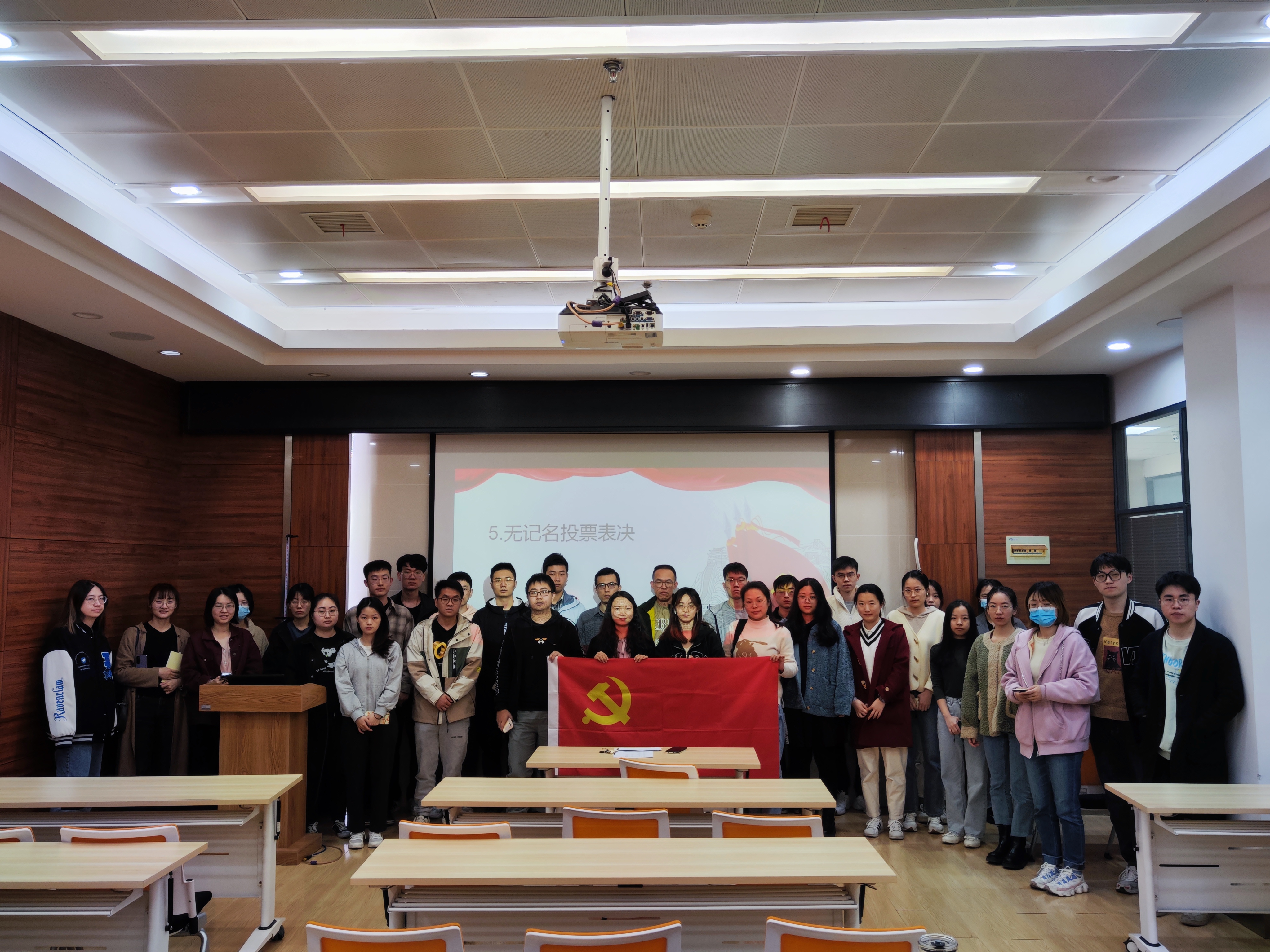 经过支部成员的充分讨论后,焦丹同志为到场的各位正式党员发放表决票,采用无记名方式进行投票表决,最终收回的24张表决票均同意接收周宁远同志成为预备党员,赞成票超过参与表决人数的一半,本次表决有效。周宁远同志感谢了各位党员对自己的支持和认可,表示自己在今后会牢记自己的党员身份,继续努力学习,更加严格要求自己。
