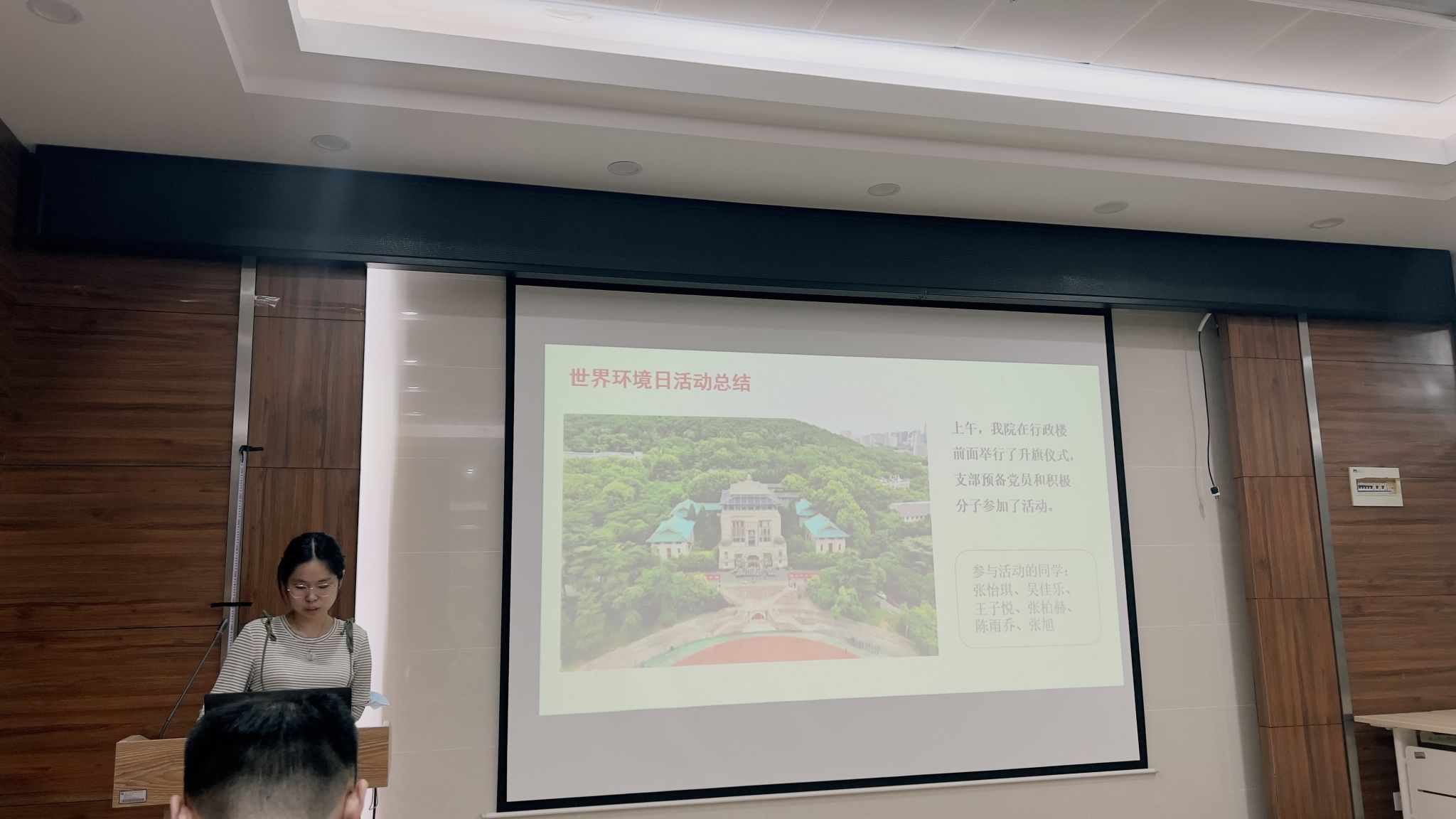 会议第一项,支部书记何欣阳同志总结了支部最近一段时间参与或组织的大型活动,并对积极参加活动的党员同志提出表扬。