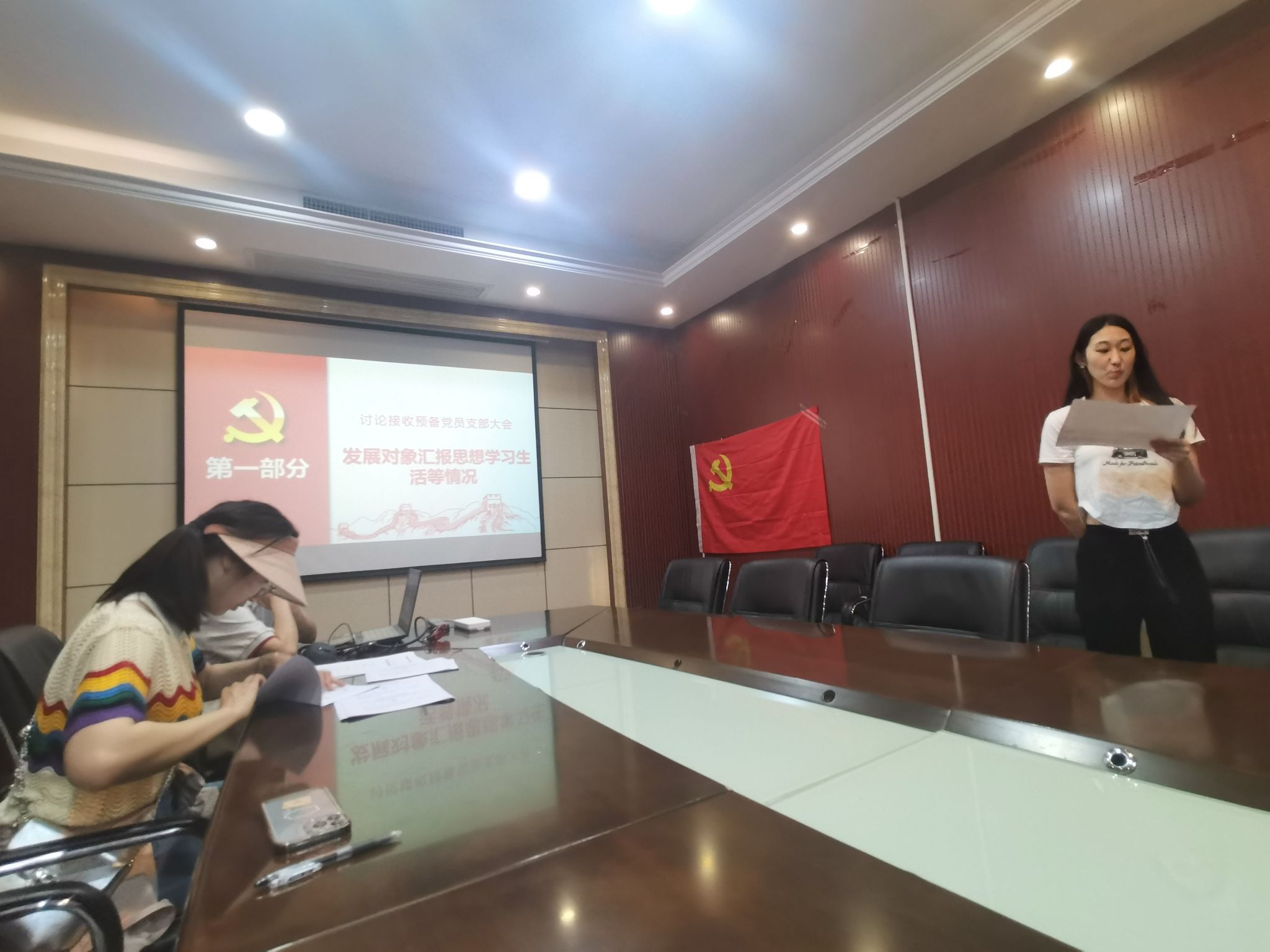 504会议室召开接收预备党员支部大会。本次会议由党支部书记高灵飞同志主持,支部党员、发展对象和入党积极分子参与此次会议。本次会议应到正式党员35名,实到正式党员21名,有表决权的到会人数超过应到会有表决权人数的半数,符合规定人数。