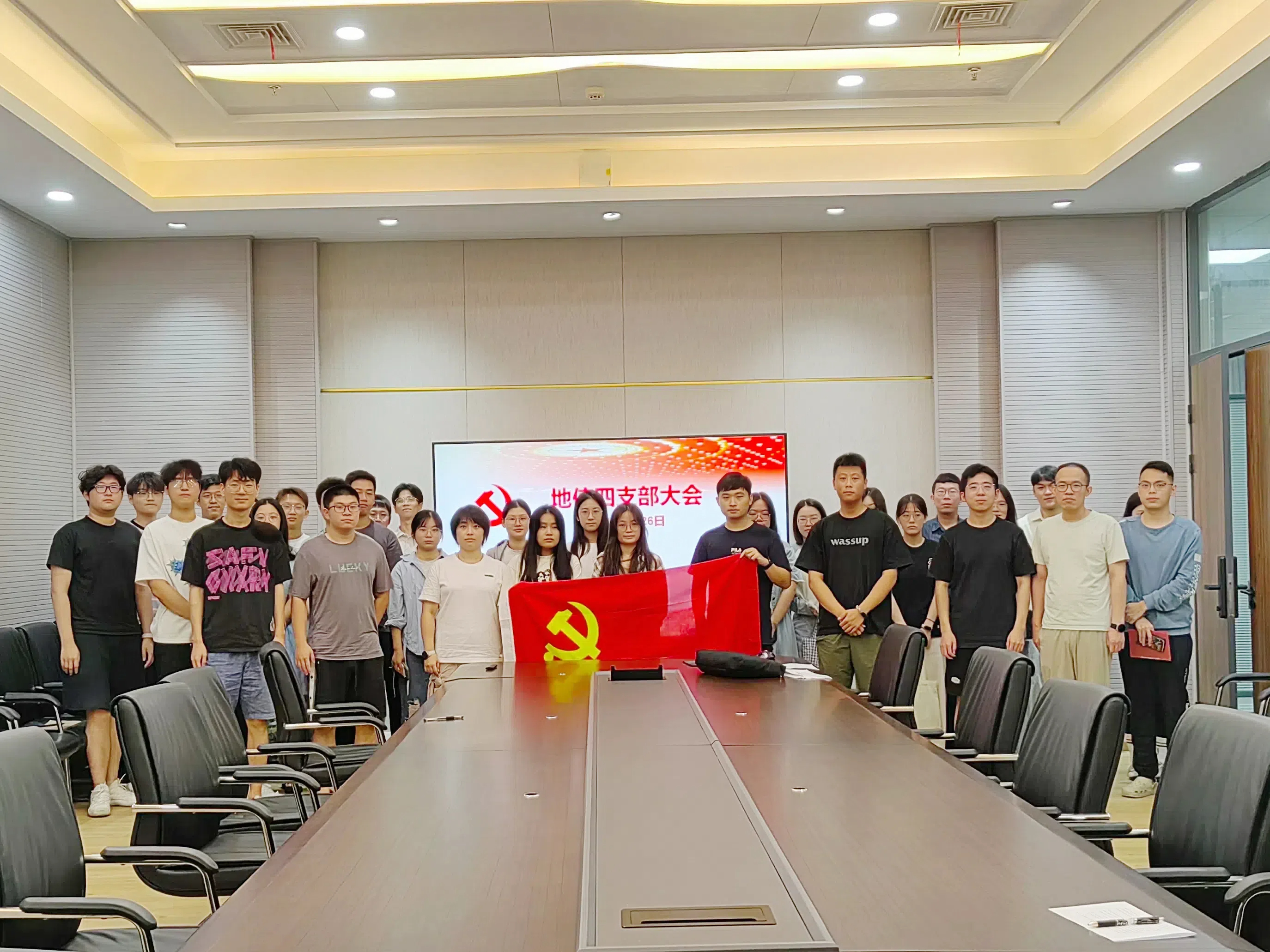2024年9月26日上午10:00,地理信息与地图科学系研究生第四党支部在电脑城318会议室召开接收预备党员支部大会、支委会成员换届选举大会暨党纪学习教育。本次会议由党支部书记张博轩同志主持。本次会议应到正式党员40名,实到正式党员32名,实到会有选举权权党员数超过应到会有选举权党员数的五分之四,符合规定人数。