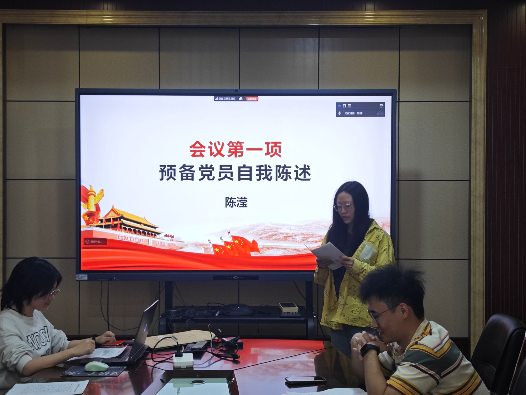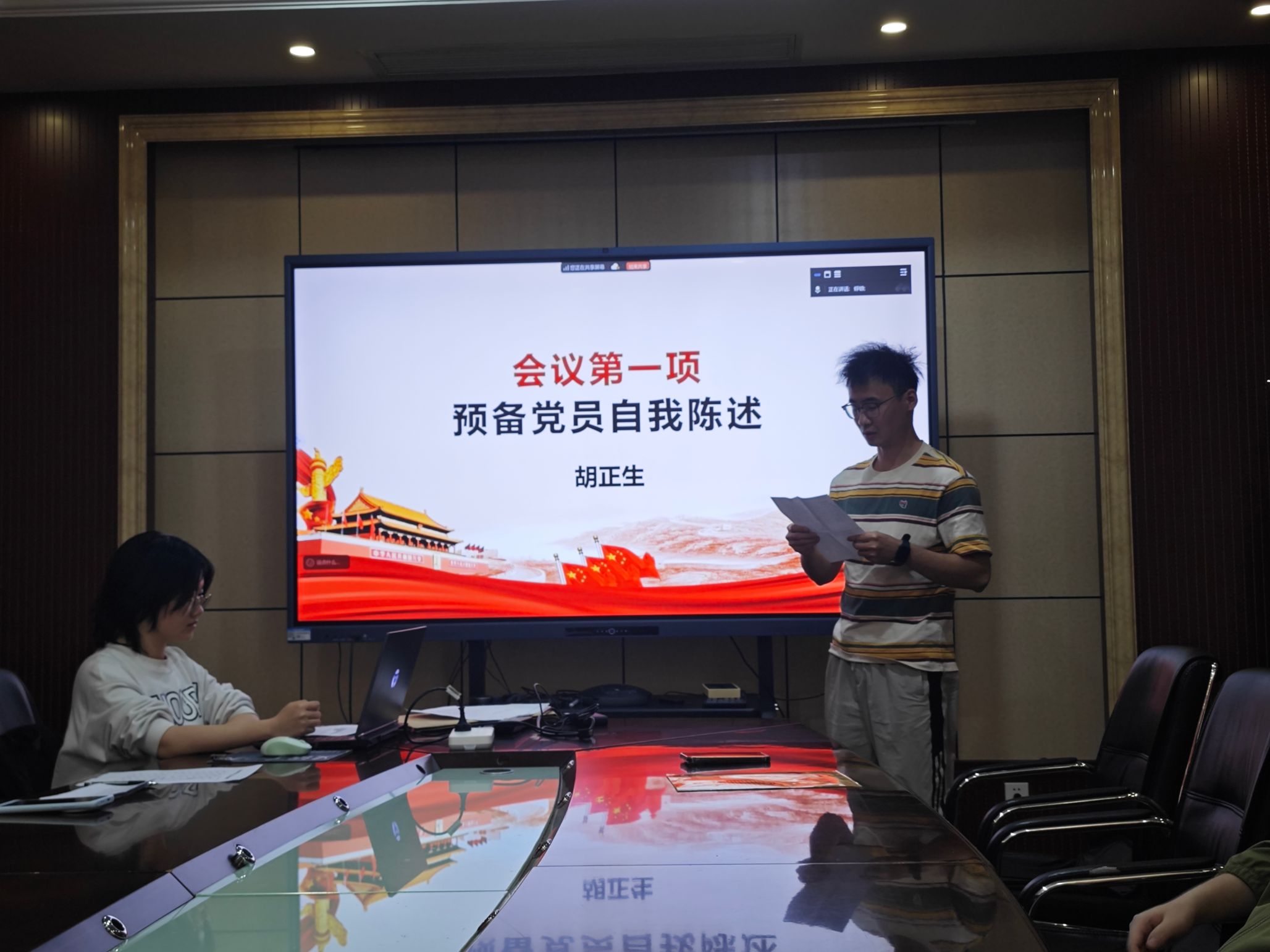 504会议室召开预备党员转正大会,讨论陈滢、胡正生同志转正事宜。本次会议由党支部书记王丹同志主持。