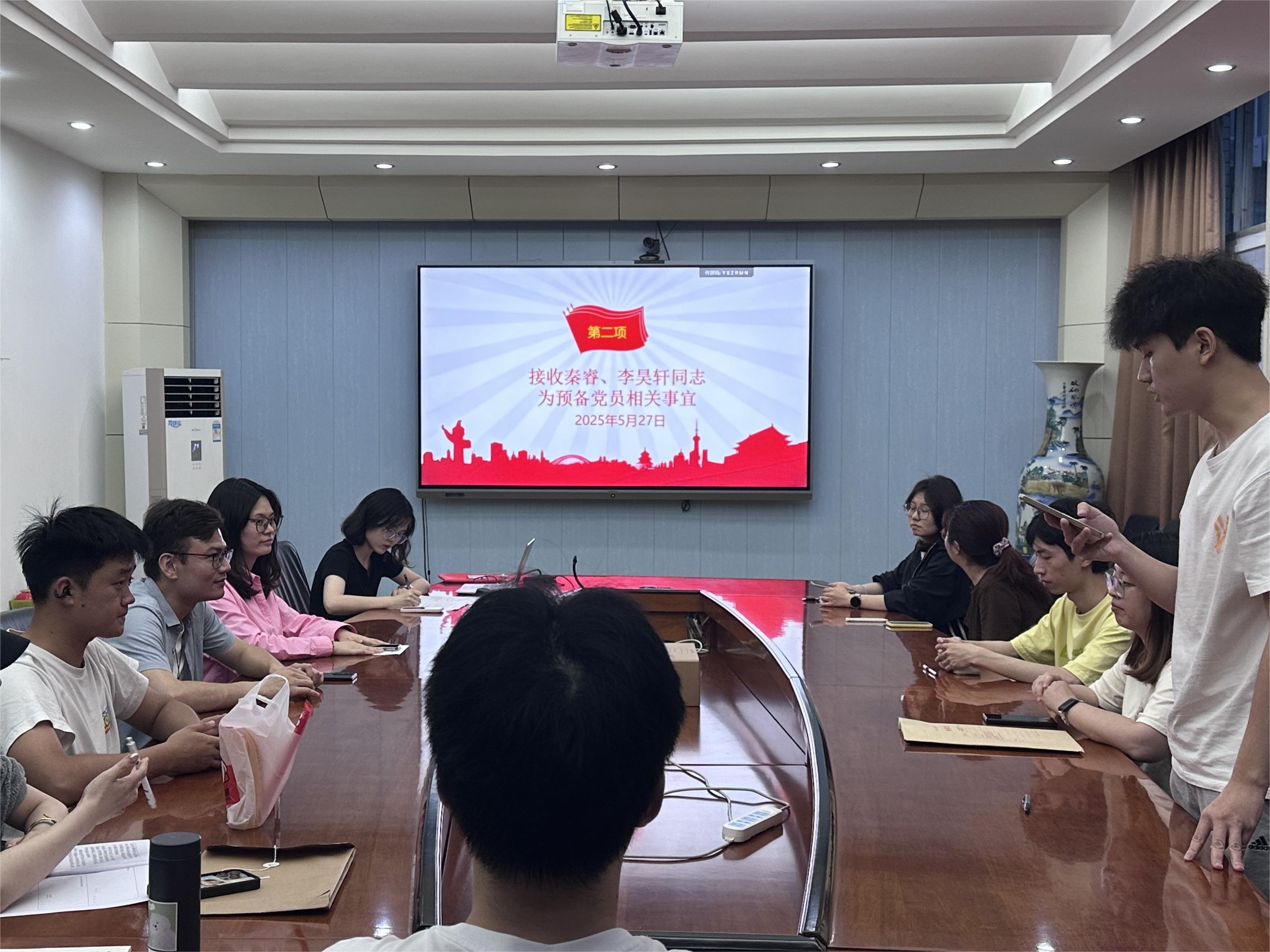 2025年5月27日19:00,地理科学与国土资源系研究生第三党支部于学院301会议室召开转正大会、预备党员接收大会。本次会议由支部书记傅梦静同志主持。