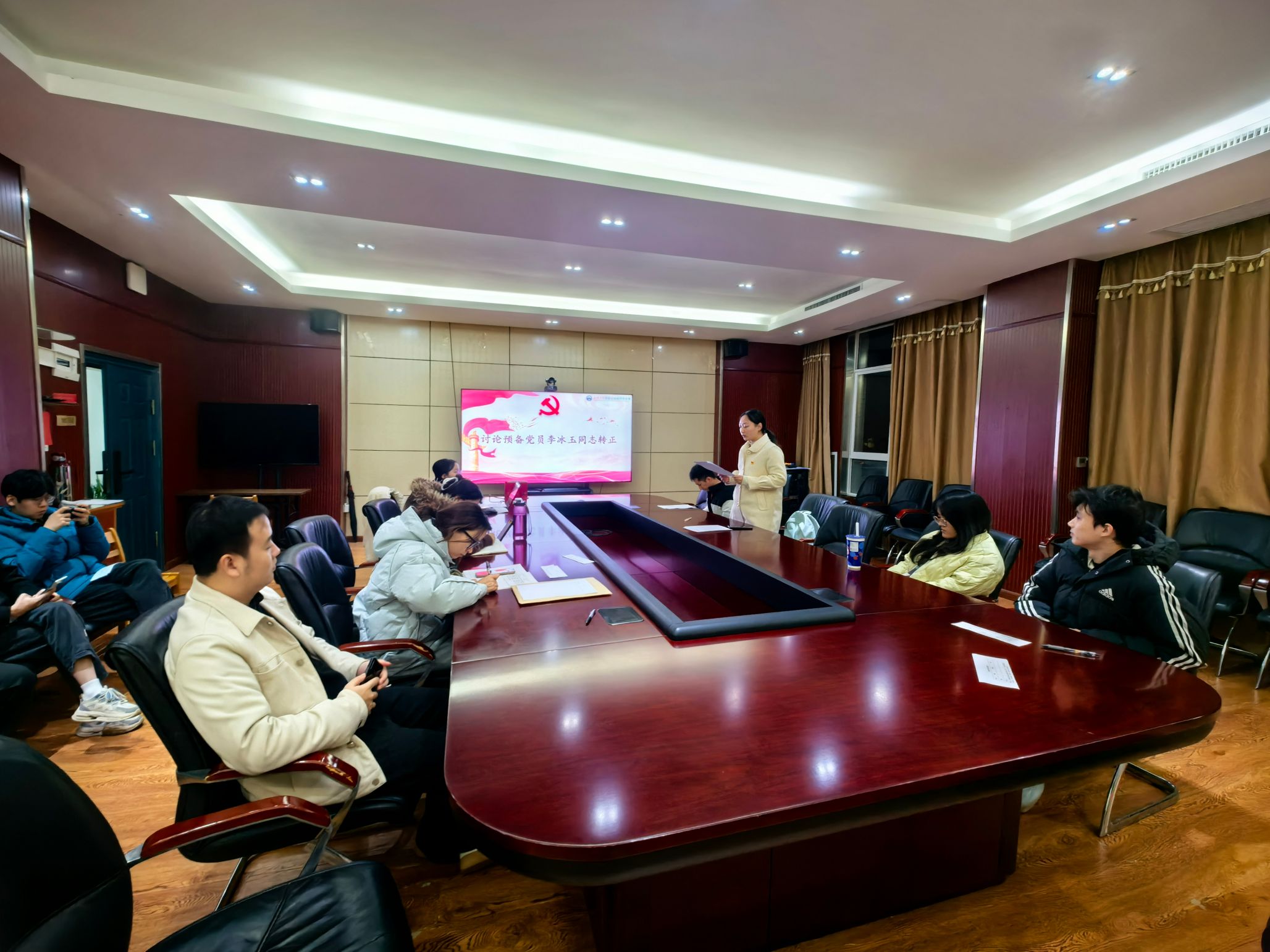 会议第二项,审议预备党员李冰玉、明皓同志的转正事宜。两位同志依次汇报预备期间思想、科研与生活表现,系统检视进步与不足;其入党介绍人分别介绍培养考察情况,一致肯定二人能以党员标准严于律己,同意按期转正。组织委员何晓蔓同志代表支委会报告教育考察意见:二人政治立场坚定,理论学习扎实,已具备正式党员条件。与会党员充分讨论并发表意见,对两位同志给予肯定。经无记名投票表决,有表决权的正式党员全票通过,同意李冰玉、明皓同志按期转为中共正式党员。