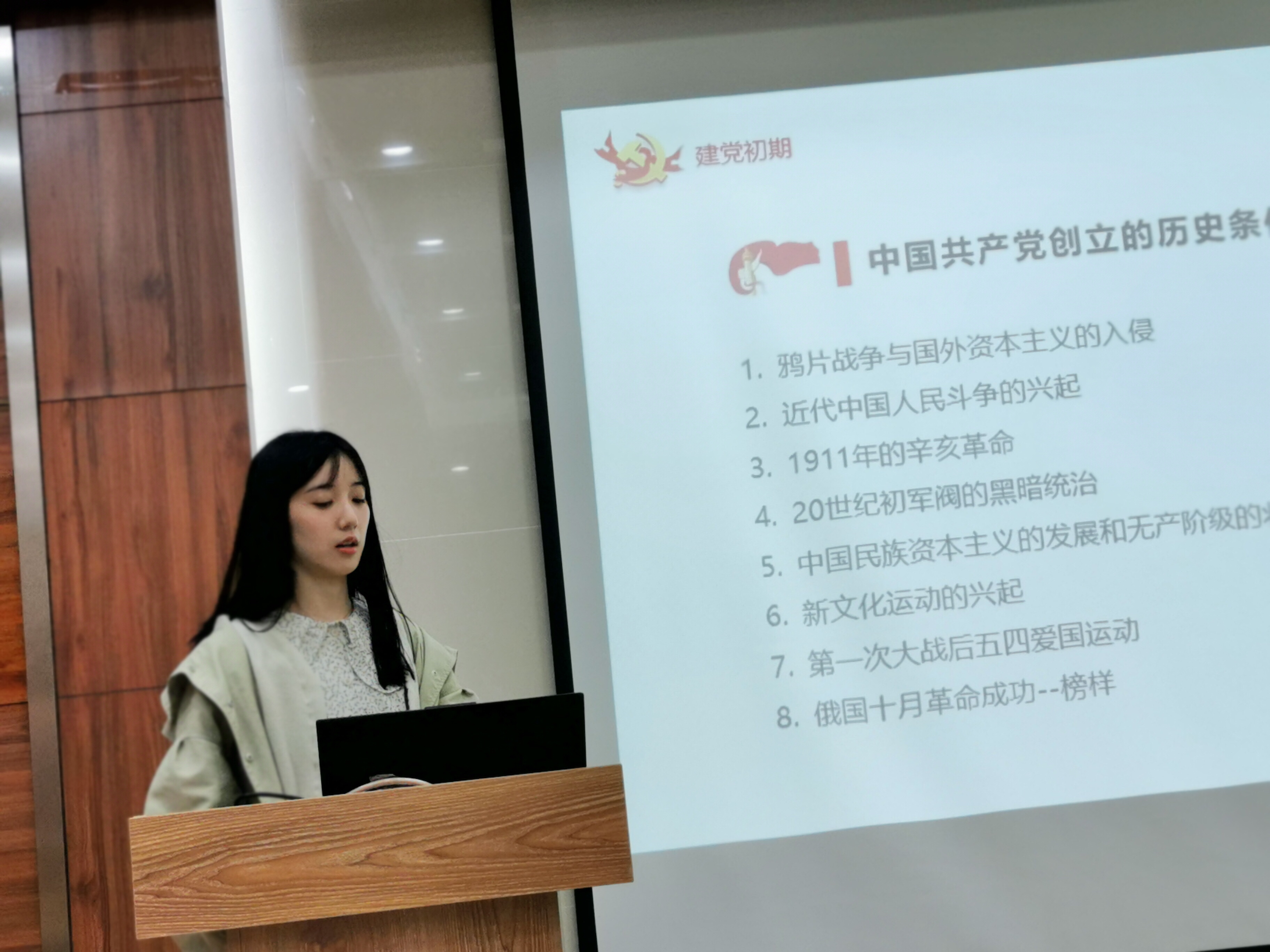 会议议程第二项由纪律委员罗璇同志讲党课,党课主题为“回顾百年辉煌党史”。罗璇同志带领大家学习了中国共产党百年光辉历程,从新民主主义革命时期到社会主义革命和建设时期,再到改革开放和社会主义现代化建设新时期,直至中国特色社会主义新时代时期,我们伟大的党带领我们取得革命的胜利、带领我们过上今天的幸福生活。