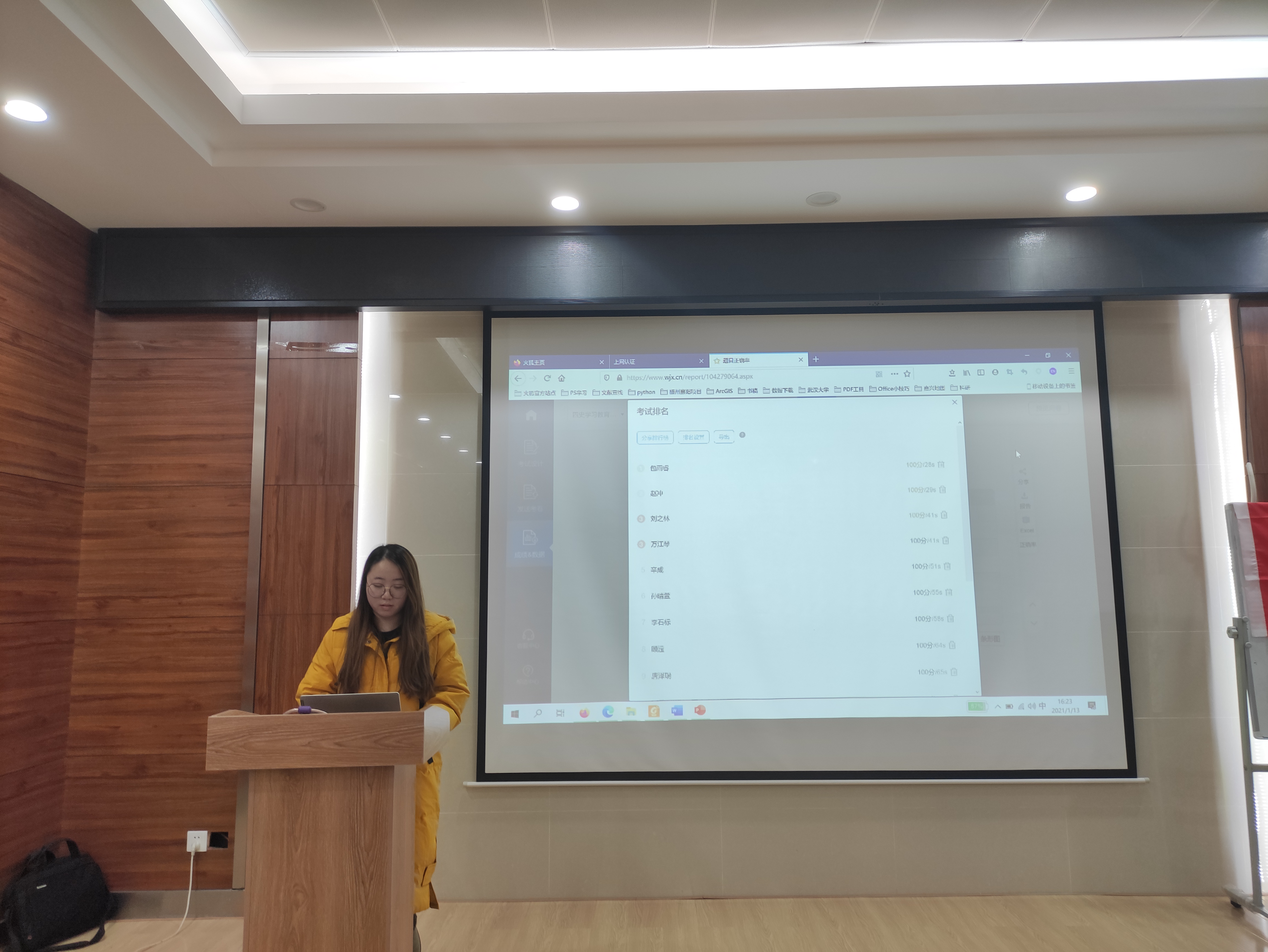 在学习结束后,为检测学习效果,包雨睿同志组织大家进行线上四史知识测验,大家积极参加,回答正确率达100%。
