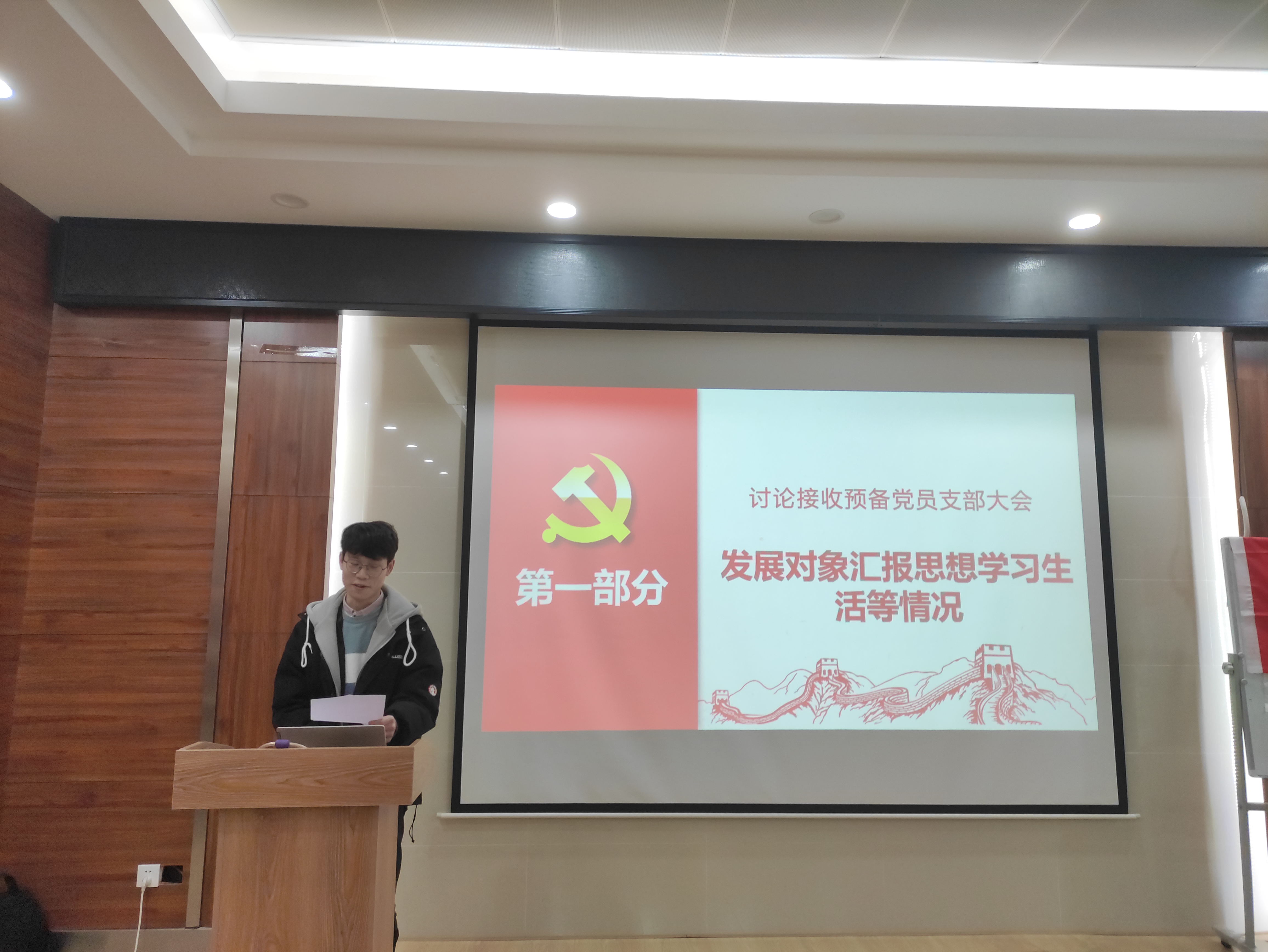 会议议程严格按照各项程序要求开展。会议第一项,刘之林同志向党组织汇报自己在发展期间的学习收获、思想认识、在校表现等情况,会议第二项,该同志的入党介绍人李石标同志向党组织介绍其在思想、学习、工作、生活等方面的情况。
