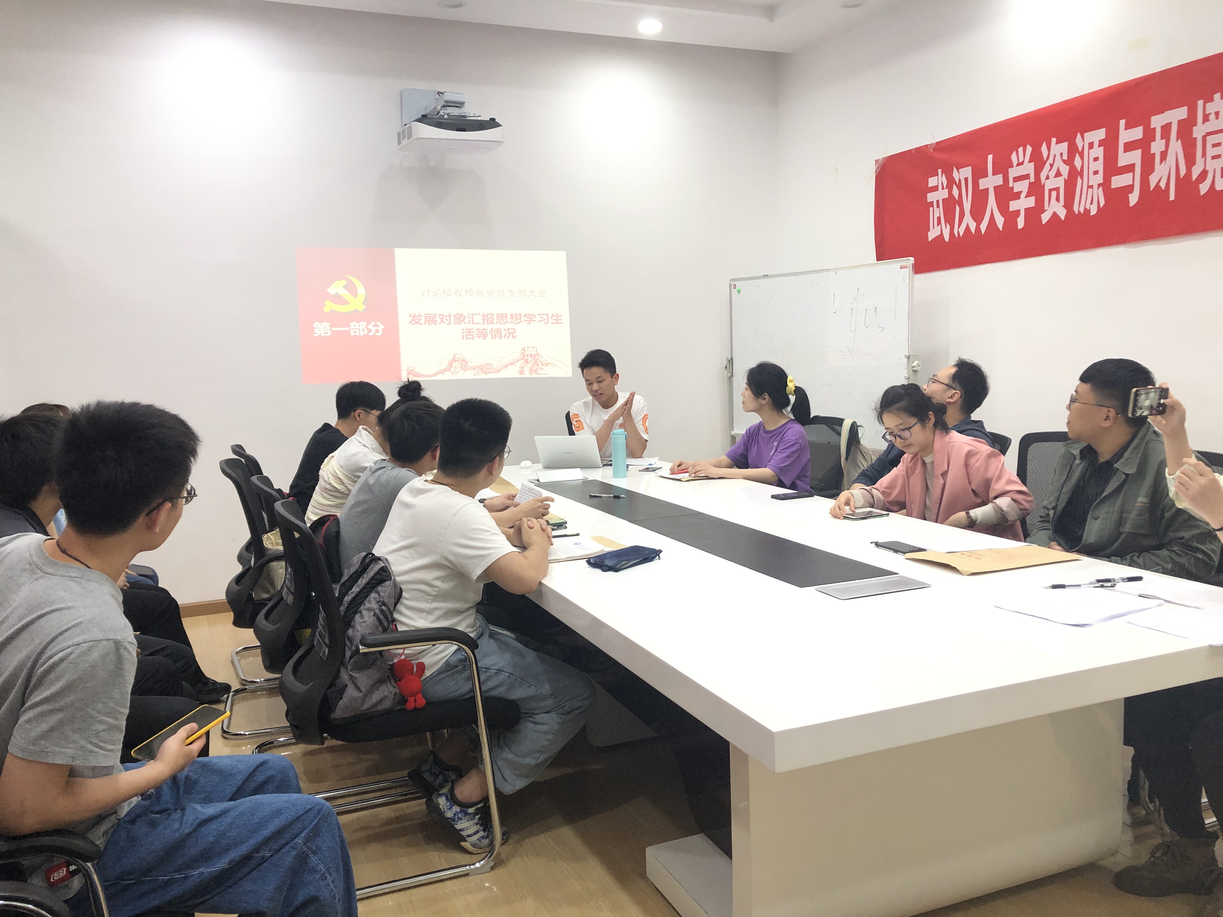 会议第三项:支部书记樊晓辉同志代表支部委员会对郭子铭等6位发展对象的综合考察情况以及政审材料、座谈记录等情况作了汇报,6位发展对象的政审合格。