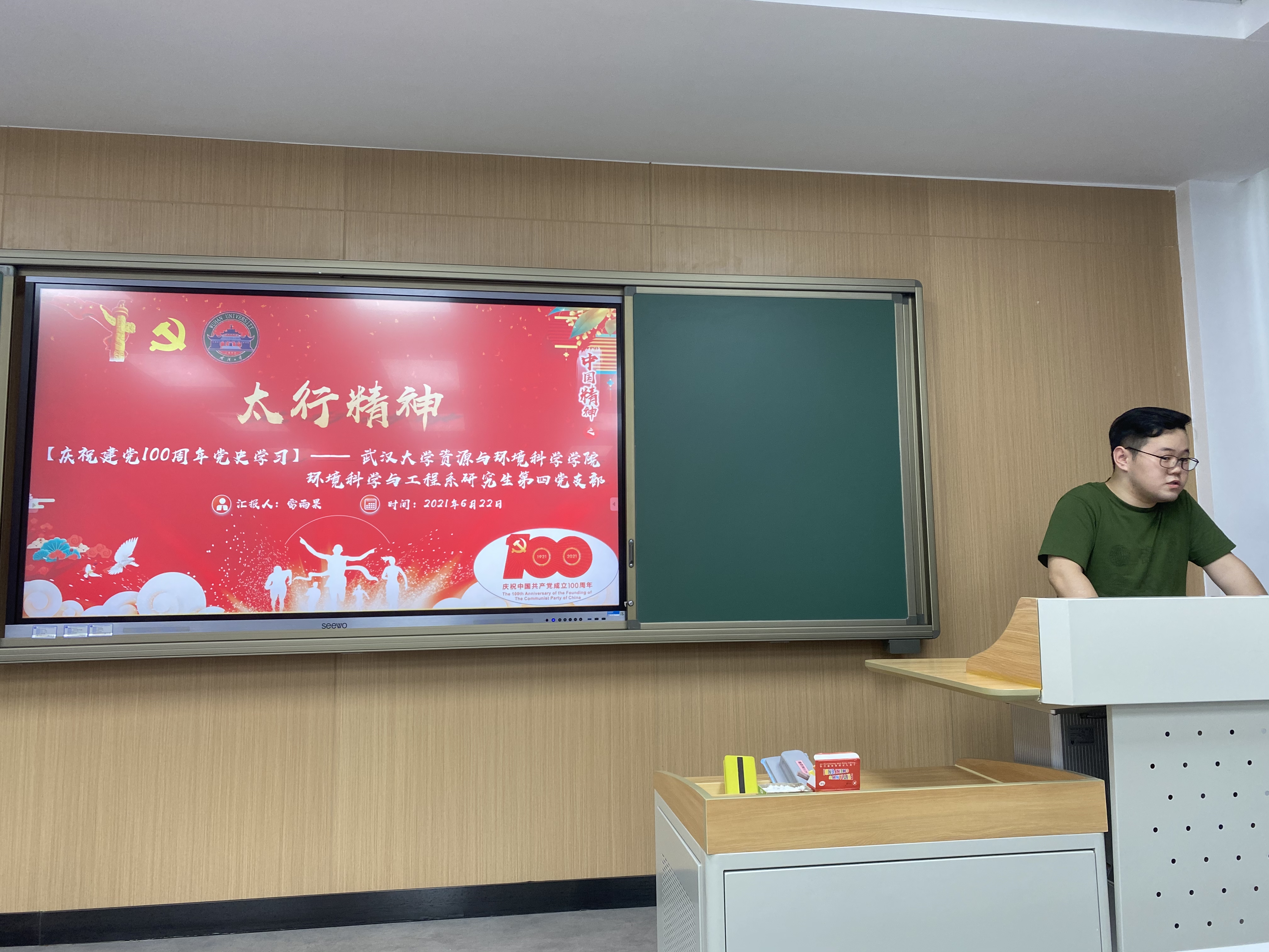 “党史学习教育”动员大会学习安排,环境科学与工程系第四党支部开展“百年辉煌史,礼赞新时代”珞珈青年系列学习活动第二弹。6月22日,支部在工学部主教220教室举行会议,党支部书记王豪杰同志主持了此次会议。