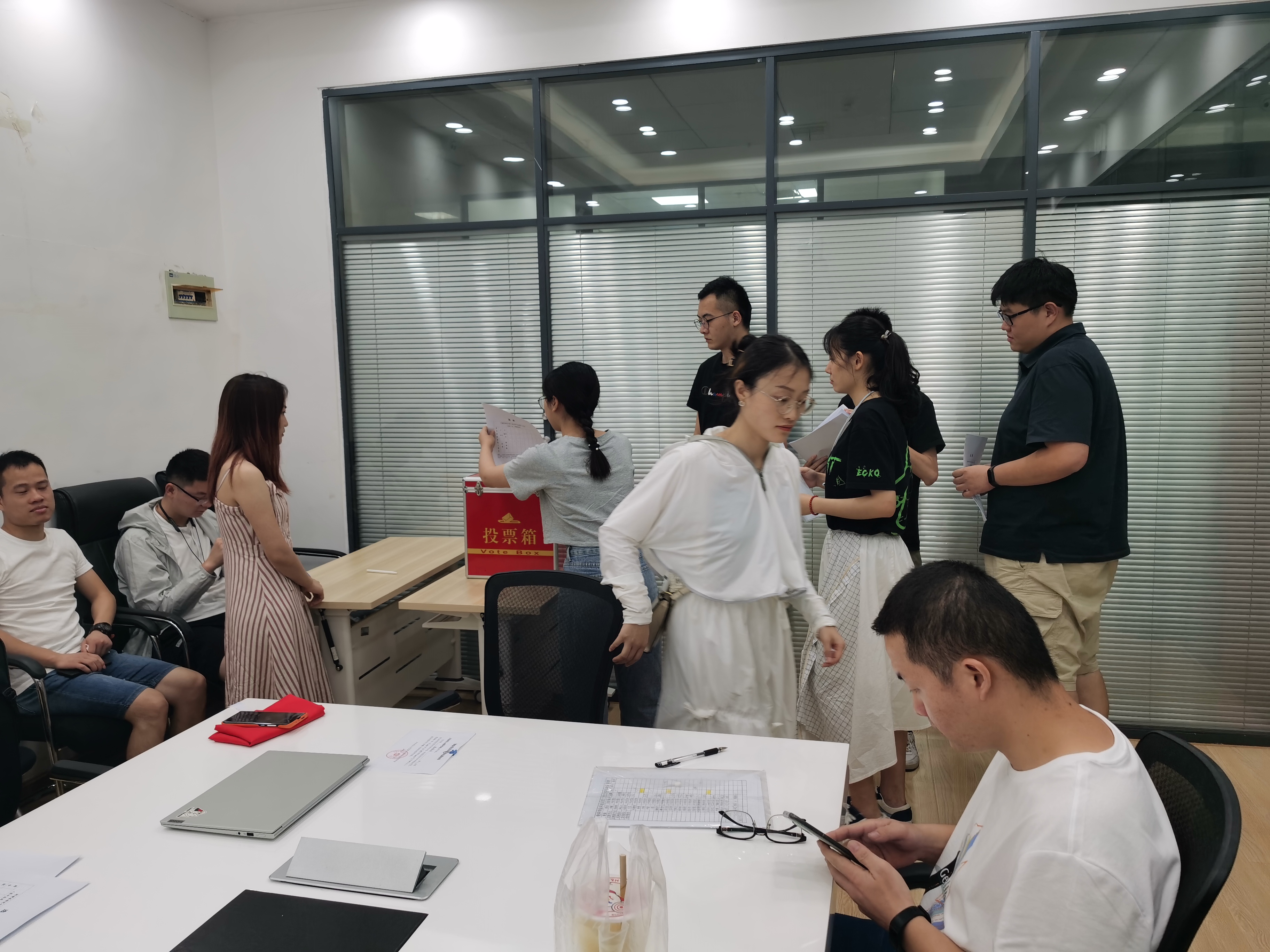 随后,石昊同志组织了党支部支委调整的党员大会。会前经过征求党员意见,支委会确定了候选人名单。其中,党支部书记及副书记为等额选举,组织委员、纪律委员及宣传委员为差额选举。党支部书记候选人石昊,副书记候选人徐笑琪,组织委员候选人景晓云、岳瑞,纪律委员候选人李子君、杨正山,宣传委员候选人郭倚帆、秦祺月分别就各自竞选职位及自身情况作出介绍,支部党员对竞选人进行无记名投票。