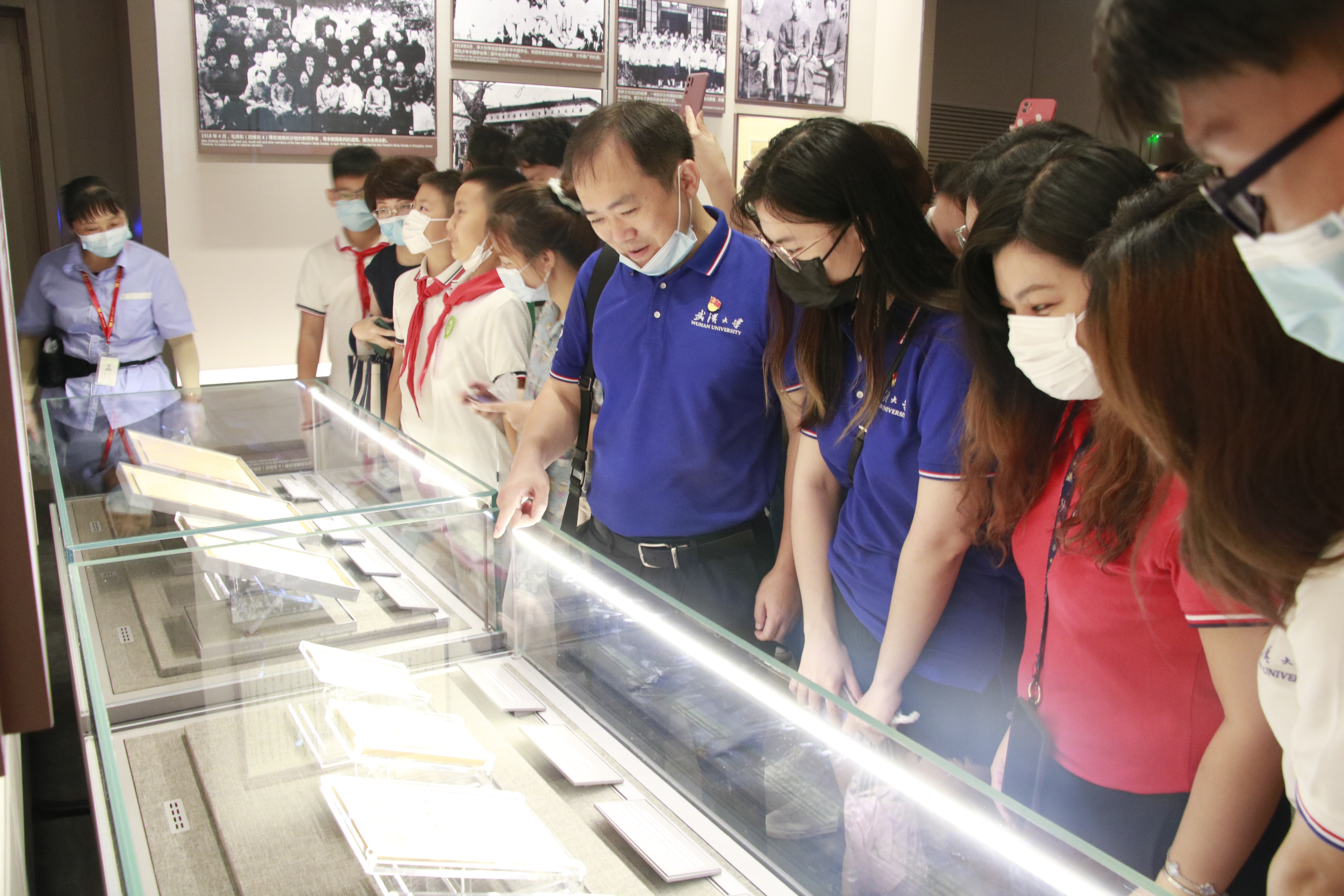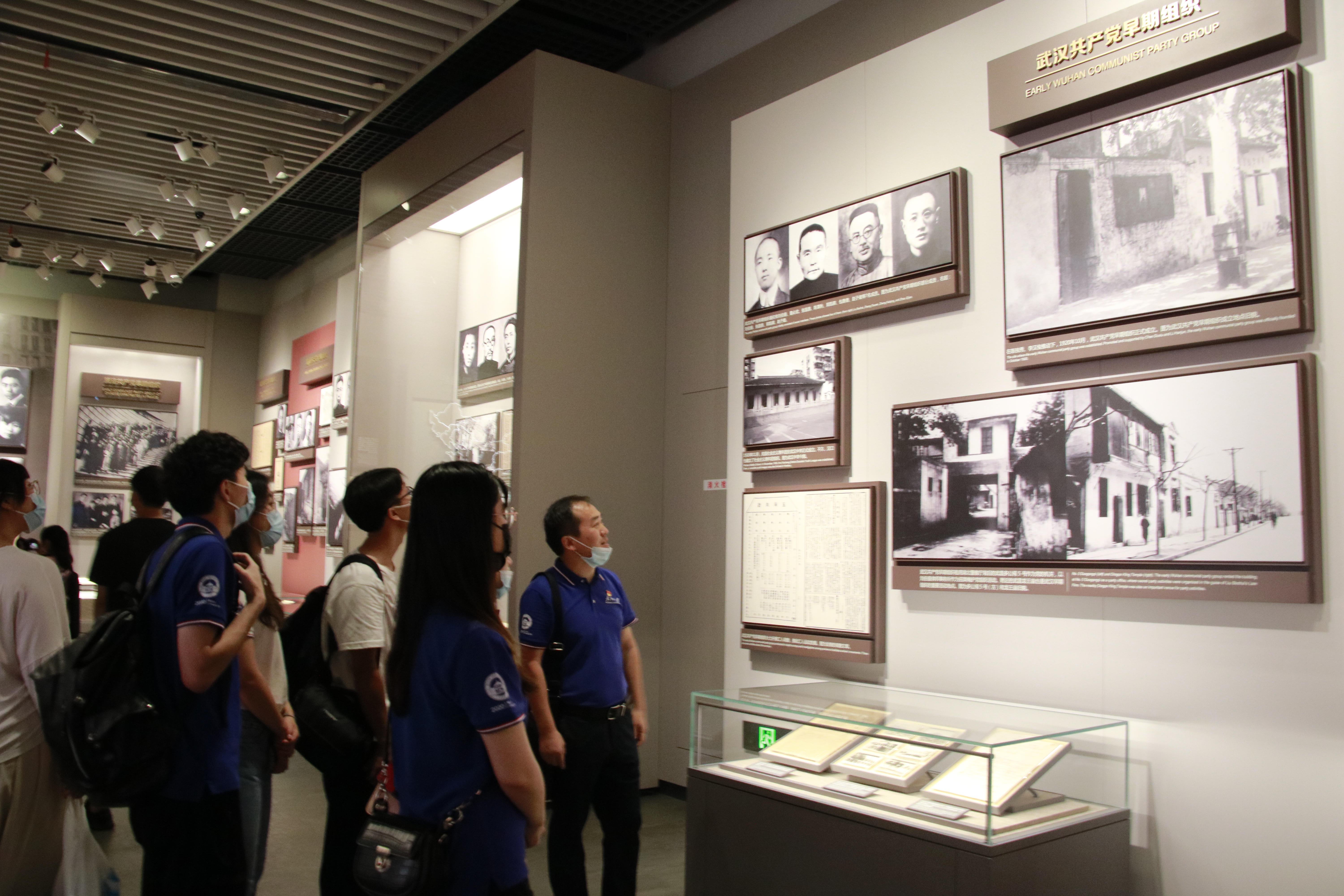 党员同志们瞻仰了中共一大代表群像浮雕,参观了《伟大开端——中国共产党创建历史陈列》、“前赴后继、救亡图存”、“风云际会、相约建党”、“群英汇聚、开天辟地”等专题展区,雷起宏老师一边听取介绍,一边询问细节,并对着大量实物、图片、雕塑和沙盘,为研究生党员解读我们党的初心。