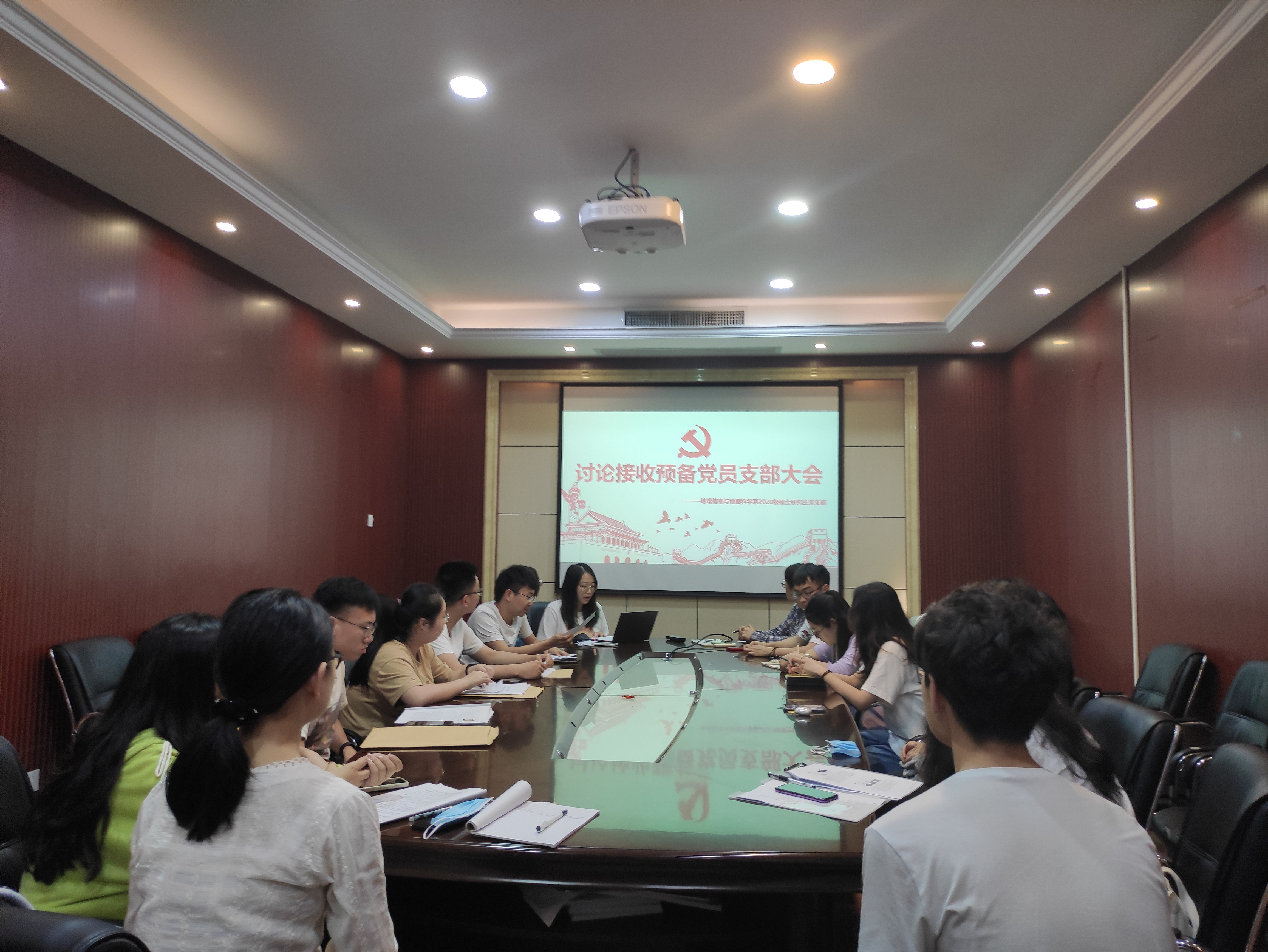 2021年5月13日周四下午两点,地理信息与地图科学系2020级硕士研究生党支部讨论接收预备党员支部大会暨党史学习教育主题党日活动于院办504召开,会议讨论了发展对象付康钰、万江琴、展开同志的入党问题。本次会议由支部书记包雨睿同志主持,本次会议应到正式党员14人,预备党员1人;实到正式党员14人,预备党员1人。