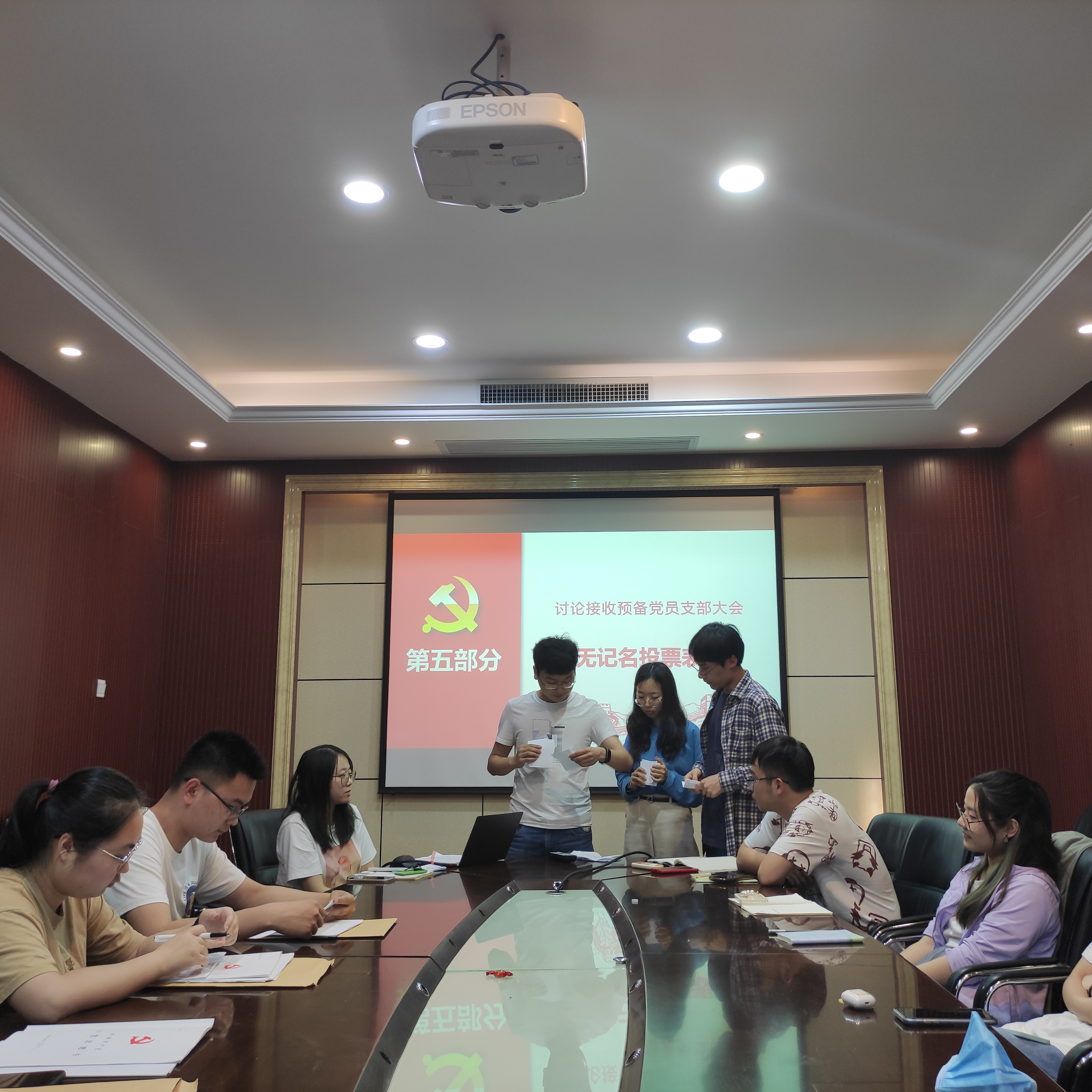 经支部大会讨论,组织委员李石标同志、副书记辛成同志和纪律委员冯梅同志分别担任计票人和监票人,支部到场有表决权的14名正式党员进行无记名投票,最终通过一致表决同意接收付康钰、万江琴、展开同志为预备党员。最后,三位同志进行了表态,向党组织表达了自身的想法与决心。
