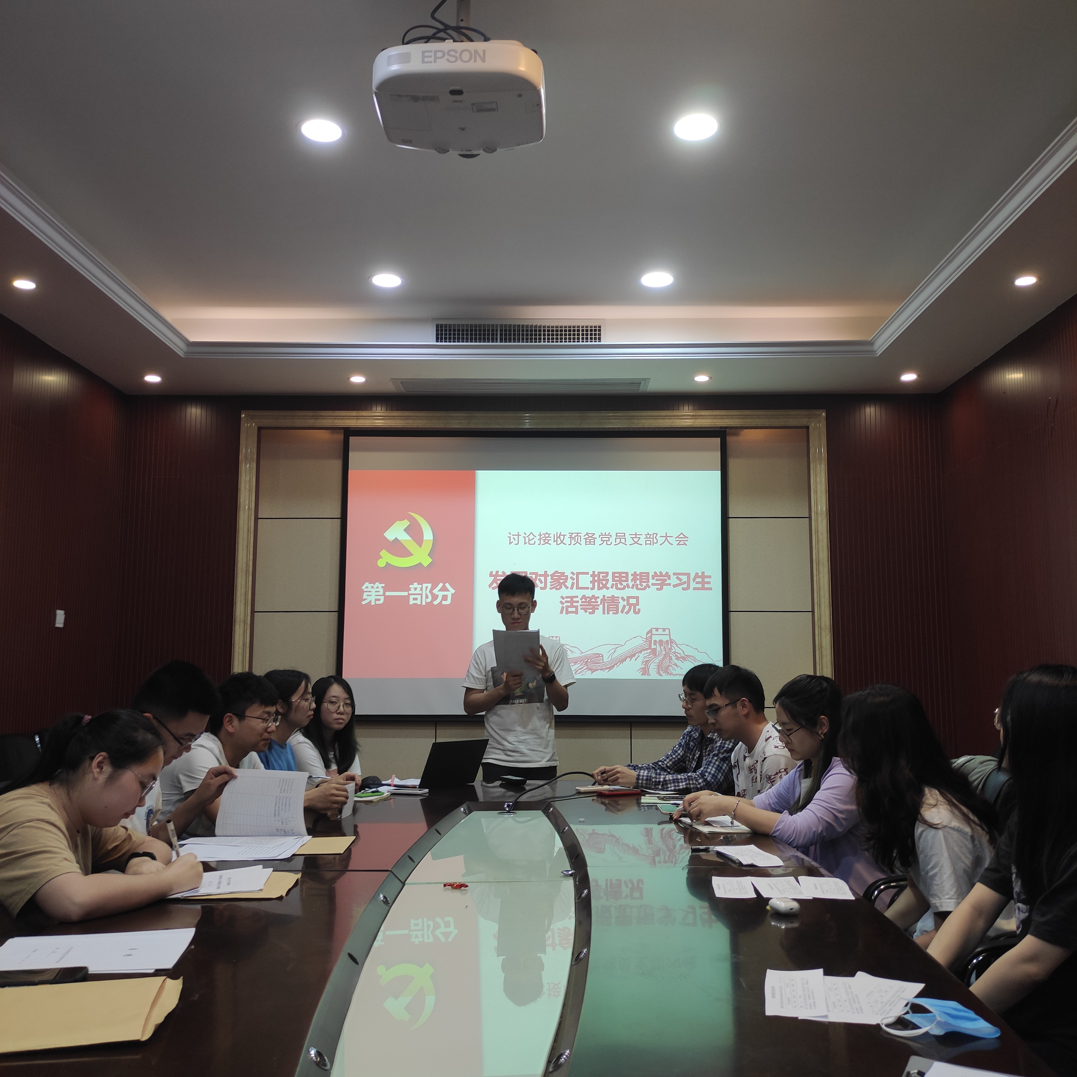 会议第三项,支部书记包雨睿同志代表支委会向大会报告了对三位同志的考察情况。会议第四项,与会党员发表意见,对是否接收三位同志为预备党员进行充分讨论,客观评价了两位同志的优缺点。