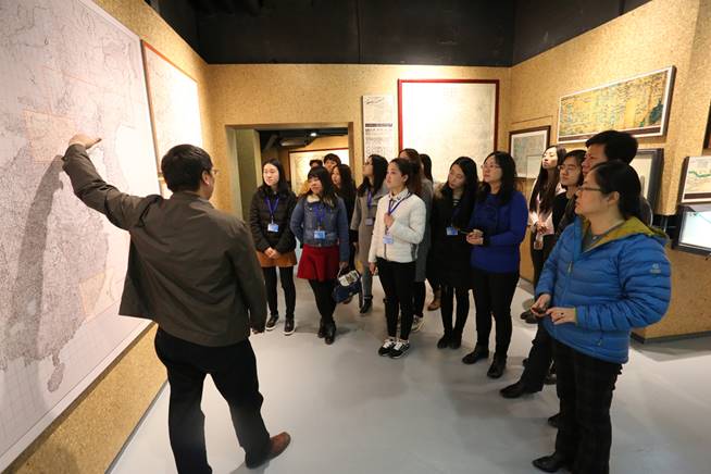 近年来,学术论文、影视剧作品中均出现过问题地图,严重损害了国家利益、民族尊严,甚至会引起外交纠纷,产生恶劣的政治影响。地图学实习课程的教学环节特别强调中国国界完整性、一致性、严肃性。通过中国标准地图服务网站,利用中国地图、亚洲地图、世界地图展示,认识中国版图正确绘制的标准地图(如图5所示)。通过在中国地图出版社实习实践(如图6所示),在实践中加强学生的国家主权和版图意识,提升学生的政治素养;提高学生对国界、岛屿等国家版图正确性的辨别能力,强化国家版图意识,培育家国情怀。