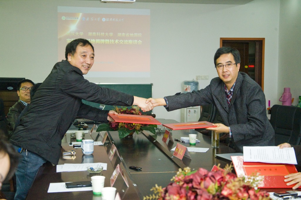 12月6日,澳门美高梅 与湖南省地图院共建的大学生校外实习基地正式挂牌。杜清运副院长与湖南省测绘学会秘书长陈均尧、省地图院书记郑进湘、副院长陈葵庄等出席了挂牌仪式。在座谈会上,双方交流了在地图与地理信息工程教学生产方面的各自发展情况,并就在人才培养和科研生产领域的合作共赢深入交换了意见。