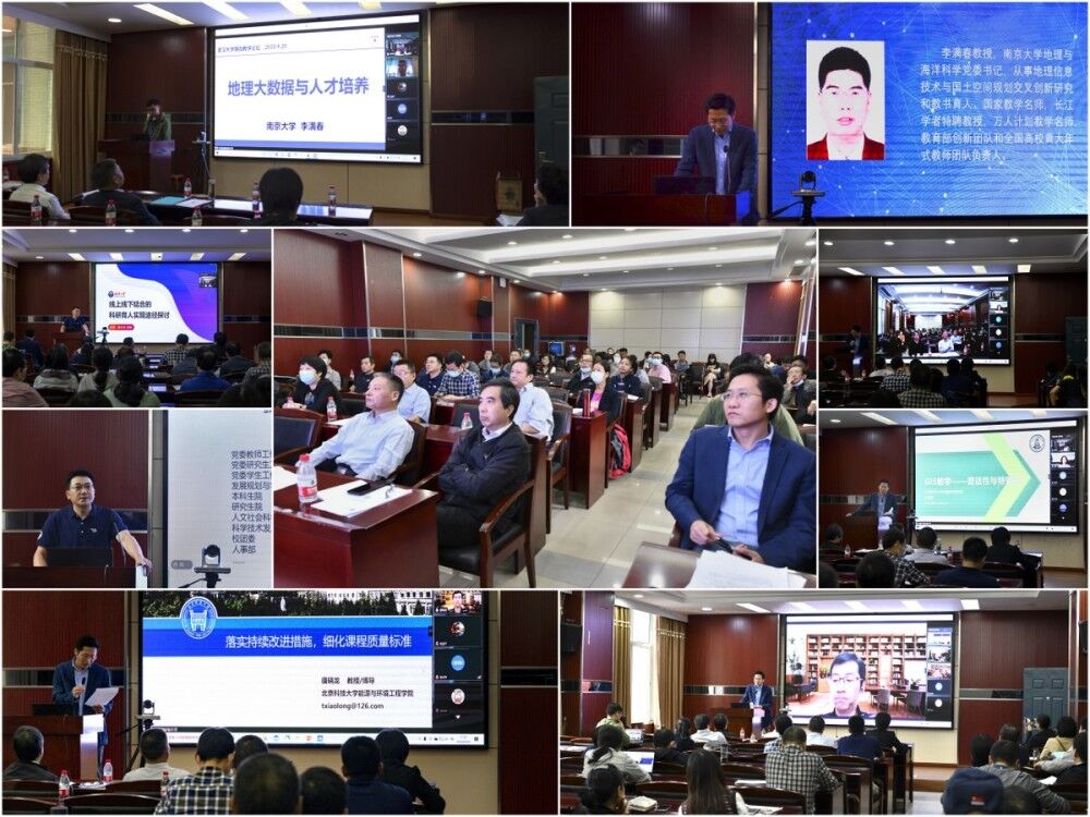 李满春教授分享了大数据时代地理人才培养的经验和MOOC建设情况,对学生提出勤学、苦练、智创的要求。胡石元教授以科研育人为主题,提出课堂教学与科学训练有机结合的方式并分享了线上线下指导学生科研活动的经验。刘慧平教授关于GIS本科教学的普适性和特殊性的分析非常具有启发性,提出教学质量的核心需坚守因材施教、制定并靶向教学目标;唐晓龙教授分享了环境工程专业认证中精细化教学质量标准建设的经验。各位专家同时通过线上会议的形式与学院教师对大家关心的问题进行了交流。