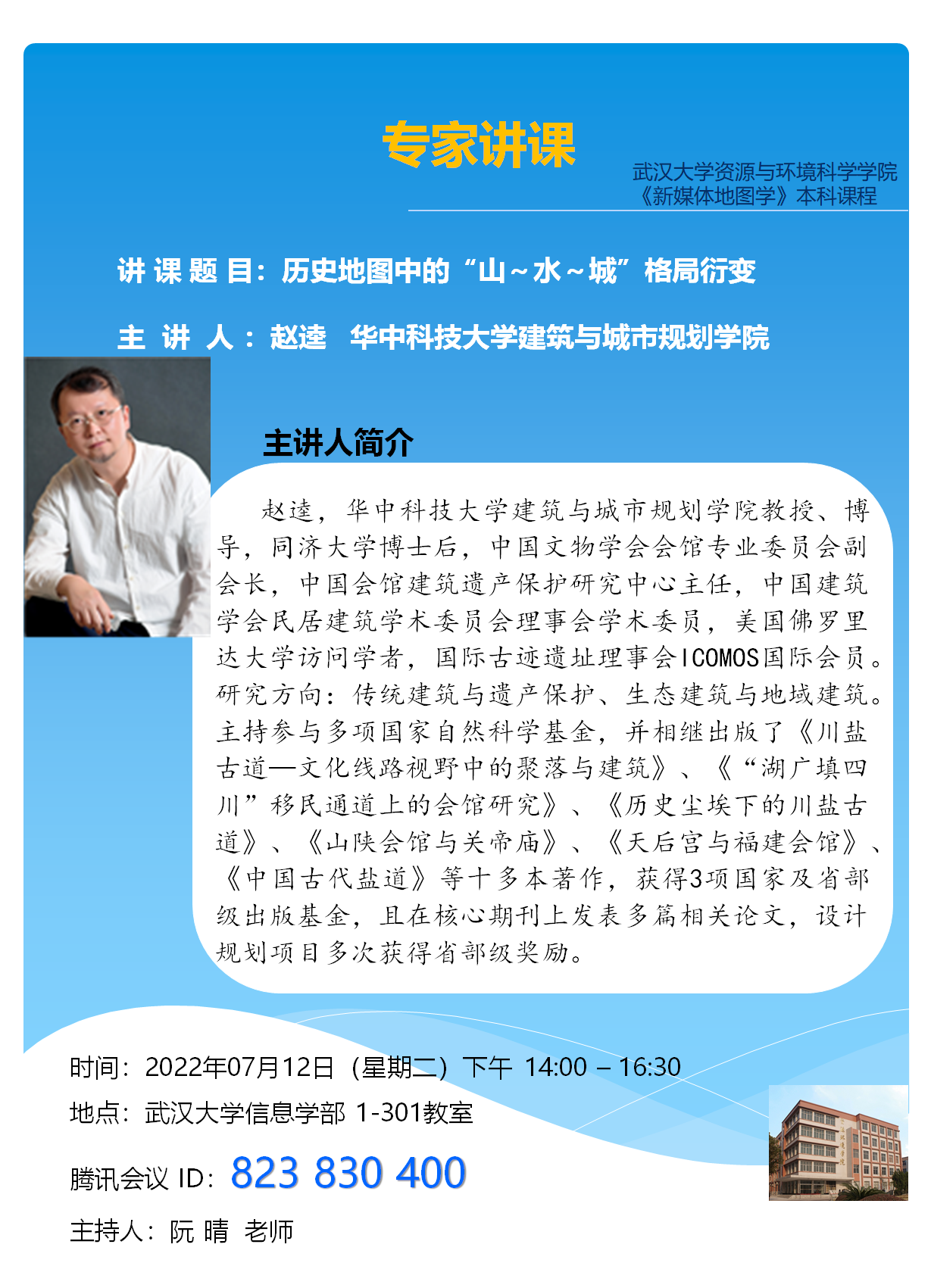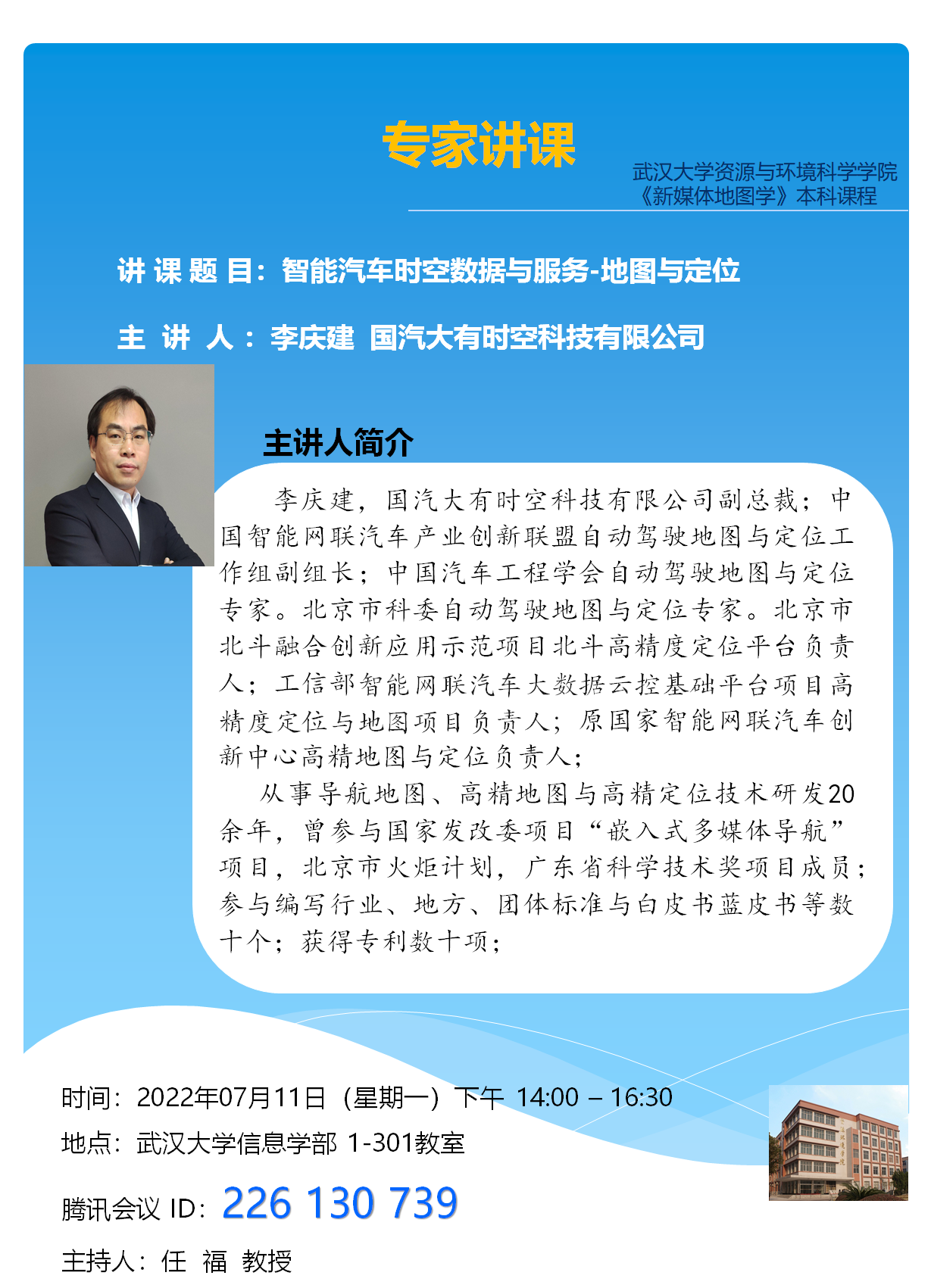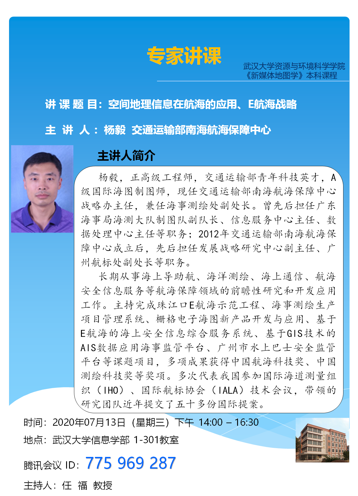 《新媒体地图学》本科课程专家讲课:智能汽车时空数据与服务;历史地图中的“山~水~城”格局衍变;空间地理信息在航海的应用、E航海战略