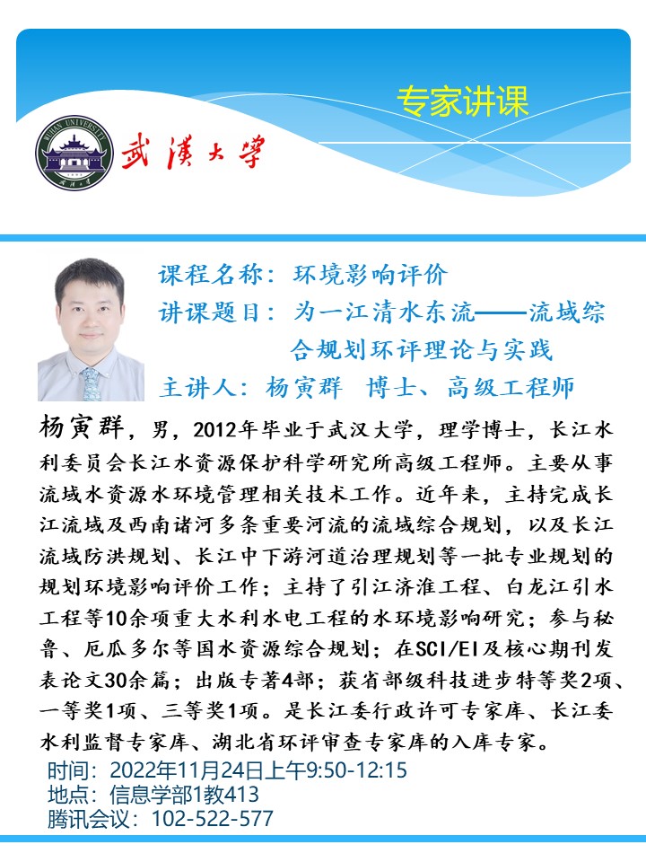 《环境影响评价》本科课程专家讲课:为一江清水东流——流域综合规划环评理论与实践