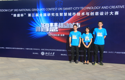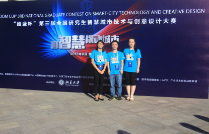 优秀奖作品《智慧学路——学生通勤时段北京道路拥堵分析与预测》(作者:资环院土管专业15级韩宇瑶,测绘工程专业14级谷岩岩,土管专业15级李泽慧、14级董婷;指导教师焦利民教授),使用出租车轨迹数据和中小学POI数据,基于道路通达性,提出一种道路拥堵等级识别方法,该方法可定量分析与预测学生通勤时段道路交通拥堵状况。