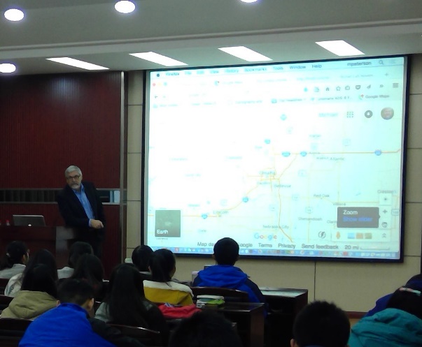 邀请,向2014级地理信息科学专业87名本科学生进行了为期三周的授课。课程名称为“云端制图”,内容选自Peterson教授2014年新编写的《Mapping in the Cloud》的主要章节。Peterson教授备课充分,授课认真,对学生热情负责,圆满完成了授课任务,给澳门美高梅