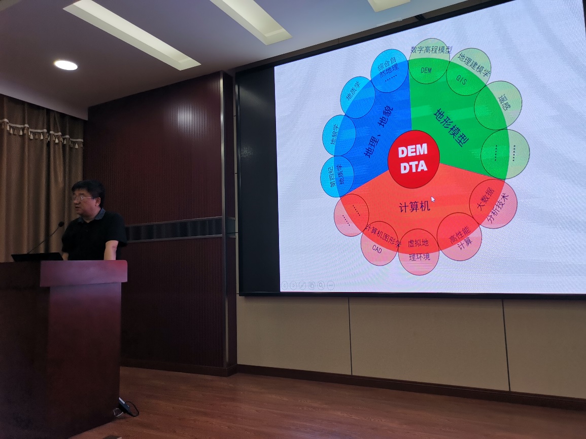 汤教授围绕“DEM(数字高程模型)”主题,报告主要包括DEM分析方法、基于DEM的地学研究和DEM典型应用案例三个方面。首先从四个不同的角度讲解了DEM的分类方法,介绍了将特征要素嵌入数字高程模型的F-DEM,以数字高程模型+梯田数据在土地调查中的应用为例,突出了F-DEM的实用性。接着阐述了基于DEM的黄土地貌研究和基于UDEM的城市形态研究。最后介绍了基于DEM的地质构造与灾害分析、基于DEM的山地小气候模拟、基于DEM的流域汇流模拟、不同年代的城市三维变化和水下DEM构造及长三角地形演变的应用案例。