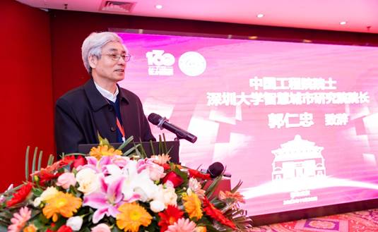 郭仁忠院士在致辞时以“同胞、同学、同乡、地缘、血缘、学缘”六个关键词分享了在校学习和工作的经历,希望校友们把握住从大建设到智能化管理时代变迁的机遇,加深交流、携手奋进。