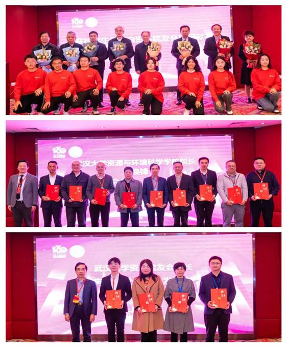 在欢快的乐曲声中,在校学生代表向院友会顾问献花表达敬意,沈焕锋向资环院友会会长、副会长颁发聘书,杜清运向秘书处成员颁发聘书。